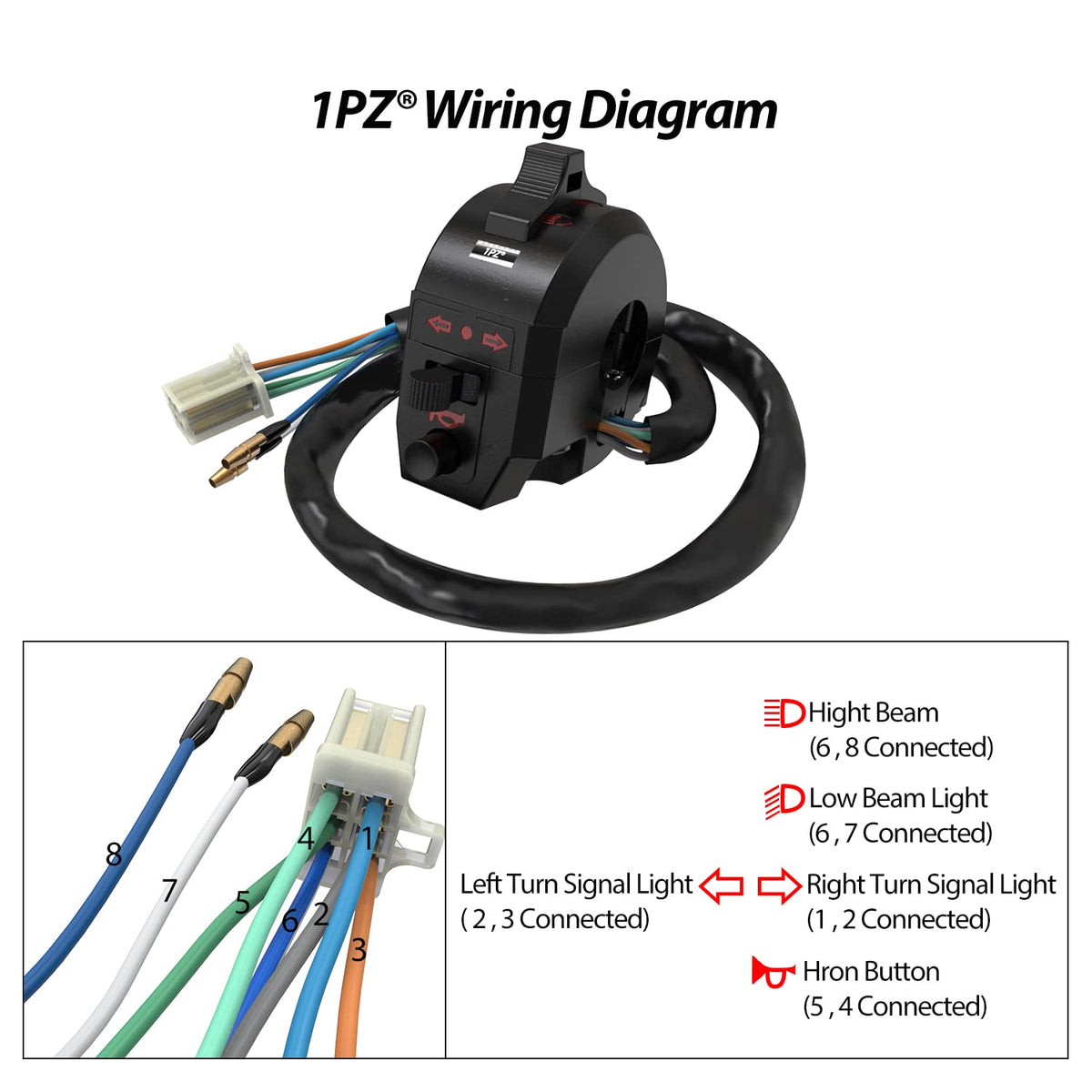 1PZ SR1-H01 Universal Light Turn Signal Switch + Flasher Relay + Horn Replacement for Honda KTM Suzuki Kawasaki Yamaha Motorcycl