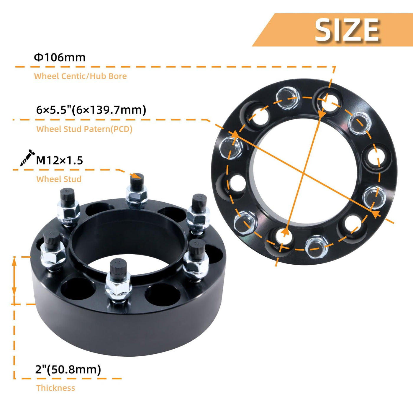 2.0'' 6x5.5 Wheel Spacers M12x1.5 Hub Bore 106mm 32mm Hub Centric, Fit for 1996-2024 Toyato 4Runner, 2002-2024 Tacoma, 2002-2006