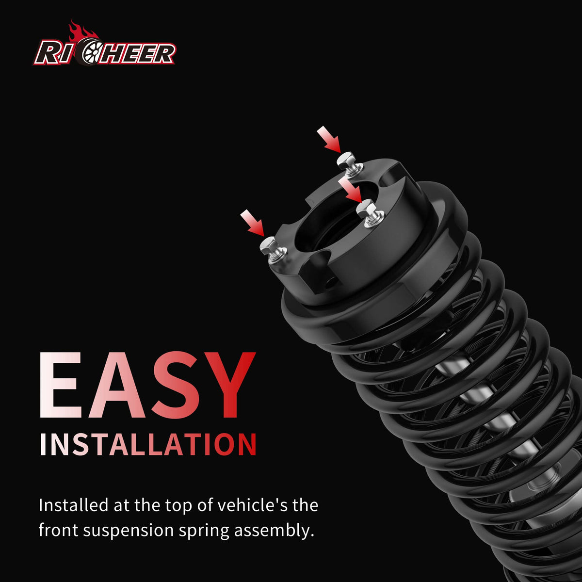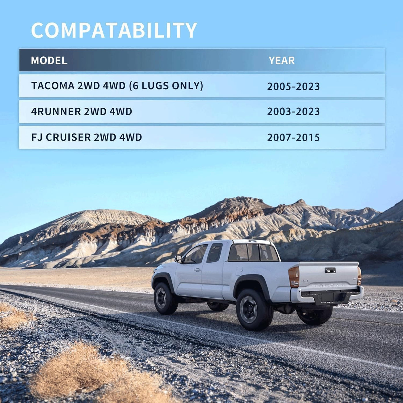 SpecificationsQuantity: TWO (2)Real thickness: 1.25''Raise height: 2.5''Material: T6 Aerospace Grade Aluminum with 12.9 grade studsImportant Note: Lift the front by 2.5''. Due to suspension geometry, the ratio of the lifting height to the thickness of the lift kit is not 1:1.Fitment2005-2024 Tacoma 2WD 4WD (6 lugs only)2003-2024 4Runner 2WD 4WD2007-2015 FJ Cruiser 2WD 4WD Does not fit Tacoma 5-Lug Models, 2017 TRD Off-Road Model OR 2018+ TRD PRO Models.Does NOT Fit 4Runner Limited Models w/ X-REAS Hydraulic Struts OR 2018+ TRD PRO Models.WARRANTYAll Richeer products are covered by the Richeer two (1) year warranty to be free of defects in material and workmanship for two years from date purchased. If you have any questions or you are not satisfied with the product, welcome to contact us.