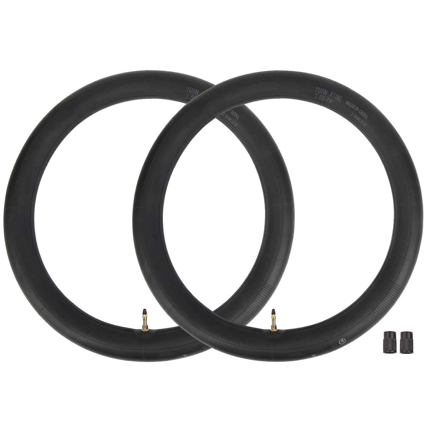 Brand new replacement Set of 2 x 2.75/3.00-19, 70/100-19 Inner Tubes. 180 Days warranty for our product. We promise 100% satisfaction customer service, contact us if you have any questions and we will provide the best customer care. Package Includes: 2 x Inner Tubes 4 x Dust Caps This inner tube is made of isobutylene isoprene rubber, which is better in air tightness, elastic damping and aging resistance than natural rubber, it has better shock resistance and stability, and can easily cope with various bumpy sections. Easy to install. NOTICE: Inspect the inside of the tire carefully to ensure it is free of dirt, foreign objects or punctures prior to installation.To Ensure You Purchase The Correct Product, Please Read The Description Carefully. Thanks. Fitment: This inner tube will fit any of the following sizes:2.75/3.00-19, 70/100-19 tube replacement. Fits Models: CR80RB 1996-2002 (Expert) CR85RB 2003-2004 and 2005-2007 (Expert) XL100 1974-1976 and 1977-1978 XL100S 1979-1980 CRF150F 2003-2005, 2006-2009, 2012 CRF150RB 2007-2009, 2012 (Expert) KX80J 1987 (Big Wheel) KX80N 1988-1990 (Big Wheel) KX80T 1991-1994 (Big Wheel) KX100 1995-1997 KX100 1998-2009 and 11-12 KLX125B 2003-2006 (KLX125L) KLX140B 2008-2009 (KLX140L) 85 SX 19/16 2004-2008 105 SX 2004-2009 105 XC 2008-2009 RM85L 2005-2008 DS100 1978-1981 RM100 2003 TC100 1973-1977 TS100 1973-1981 DRZ125L 2003-2009 TC125 1971-1977 TS125 1971-1981 TTR125L 2000-2008 TTR125LE 2003-2009 and 2011-2012 Installation: Remember to always add a little air (to give the tube form) to the new inner tube before installing it. This will prevent it from bunching up and/or causing a pinch flat or possibly blowing the Tire off the Hub Rim (when you immediately and fully inflate) which ultimately will pop the tube.