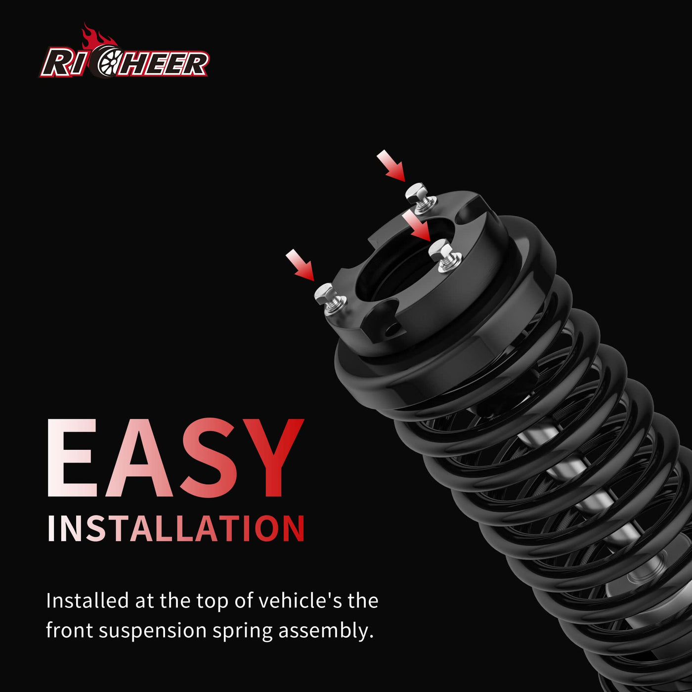 Specifications Quantity: TWO (2) Real thickness: 1'' Raise height: 2'' Material: T6 Aerospace Grade Aluminum with 12.9 grade studs Important Note: Lift the front by 2''. Due to suspension geometry, the ratio of the lifting height to the thickness of the lift kit is not 1:1. Fitment 2005-2023 Tacoma 2WD 4WD (6 lugs only) 2003-2023 4Runner 2WD 4WD 2007-2015 FJ Cruiser 2WD 4WD Does not fit Tacoma 5-Lug Models, 2017 TRD Off-Road Model OR 2018+ TRD PRO Models. Does NOT Fit 4Runner Limited Models w/ X-REAS Hydraulic Struts OR 2018+ TRD PRO Models. WARRANTY All Richeer products are covered by the Richeer two (1) year warranty to be free of defects in material and workmanship for two years from date purchased. If you have any questions or you are not satisfied with the product, welcome to contact us.