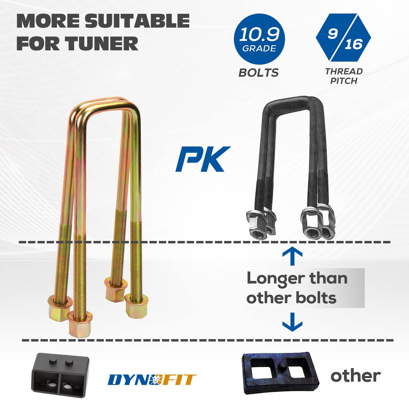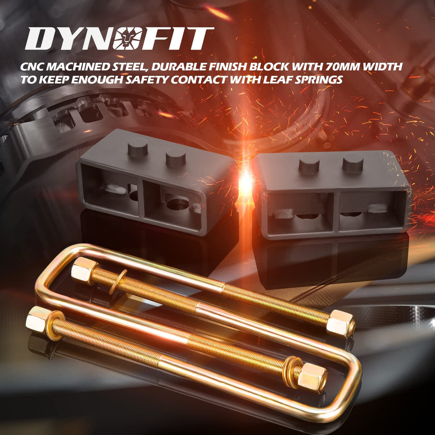 2 Inch Rear Lift Blocks For Ford F150 2004-2020, Dynofit 2'' Suspension Leveling Block Kit With Extended U-Bolts For F-150 2Wd 4