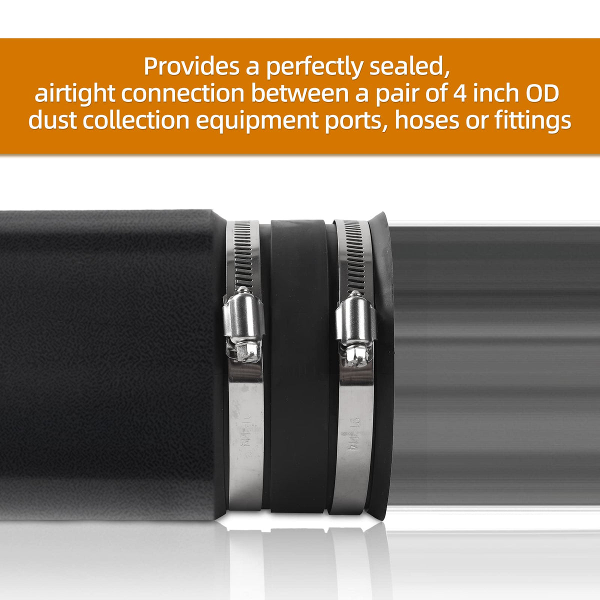Reusable Flexible Hose Cuff Coupler Easy To Install And Uninstall. Just Tighten Or Loosen The Integrated Hose Clamp, Respectively. Theres No Need To Disassemble, Remove Hardware, Or Cut Duct Tape To Remove Or Reuse The Cuff. Interchange And Connect Different Dust Collection Equipment In A Matter Of Seconds! Conforms With The Shape Of The Hoses The Rubber Of This Cuff Is Flexible Enough To Fit And Conform To Slight Variations In Hose Or Fitting Diameter. The 2 Integrated Hose Clamps Will Ensure A Seamless And Airtight Seal On Both Ends Of The Connection. &Nbsp; Suitable For Many Applications Connecting To Hose Cone Reducers Or Other Adapters Connecting Blast Gates To Dust Collection Flex Hose Or Hard Piping Connecting Temporary Dust Collection/Vacuum Setups Connecting A Planer Or Table Saw To A Vacuum Hose Note: This Rubber Cuff Is Not Suitable For Applications That Require High Operating Temperatures. Its Mainly Designed For Dust Collection Systems And Other Workshop Applications.