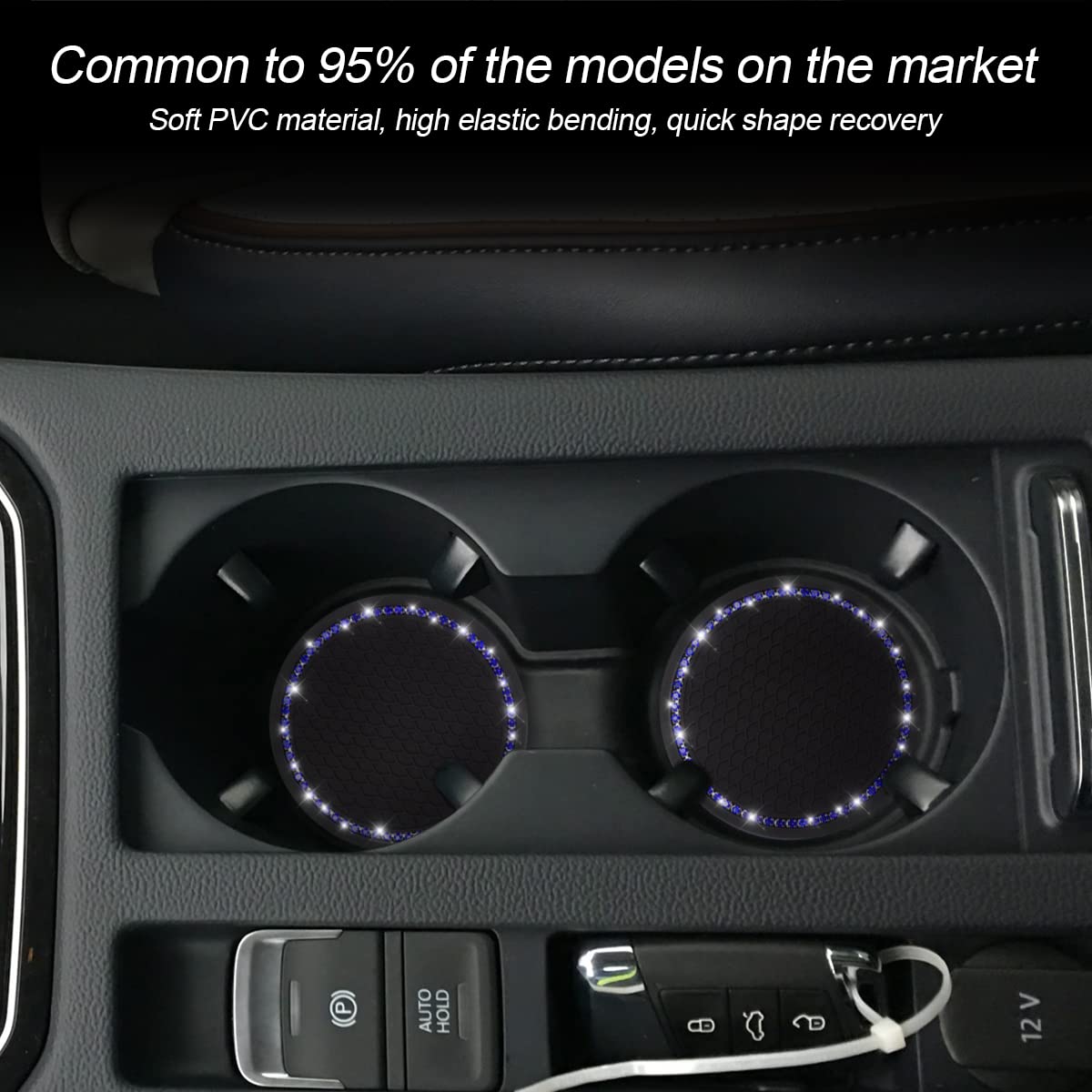 Q: What materials are used in the car cup holder coasters?A: The car cup holder coasters are made from high-quality silicone material featuring a bling rhinestone design, ensuring they are anti-slip, heat-resistant, and durable.