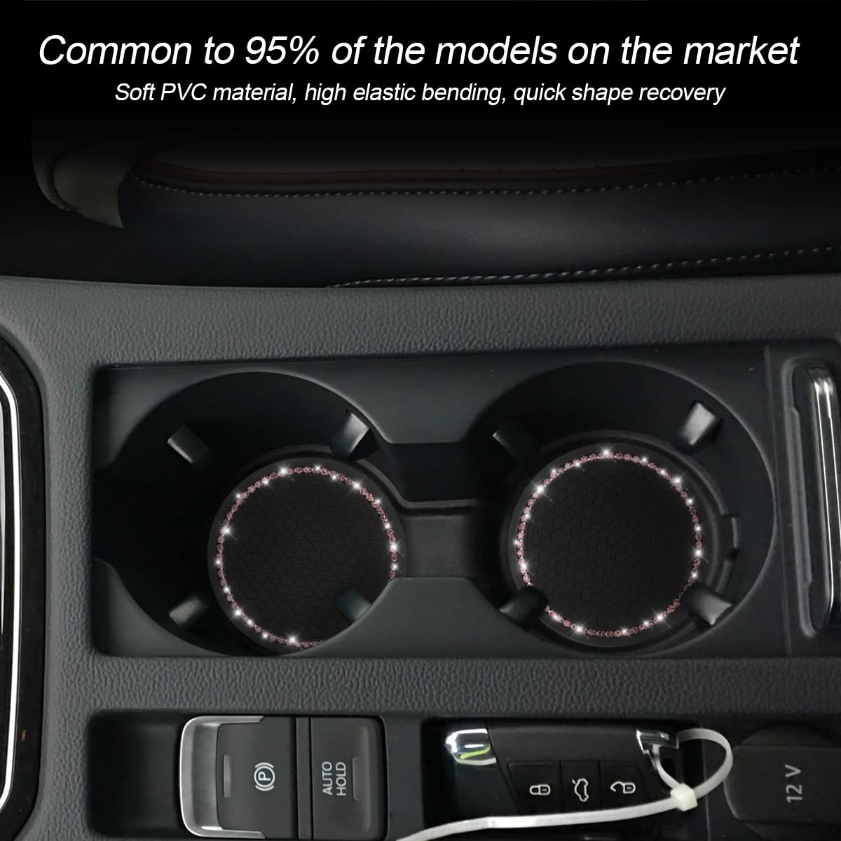 2 Pack Car Bling Cup Holder Coaster, 2.75 Inch Crystal Rhinestone Car Cup Holder Insert Coaster,Universal For Cars, Vehicles, Suvs, Car Interior Accessories For Women And Men (Black/Pink1)