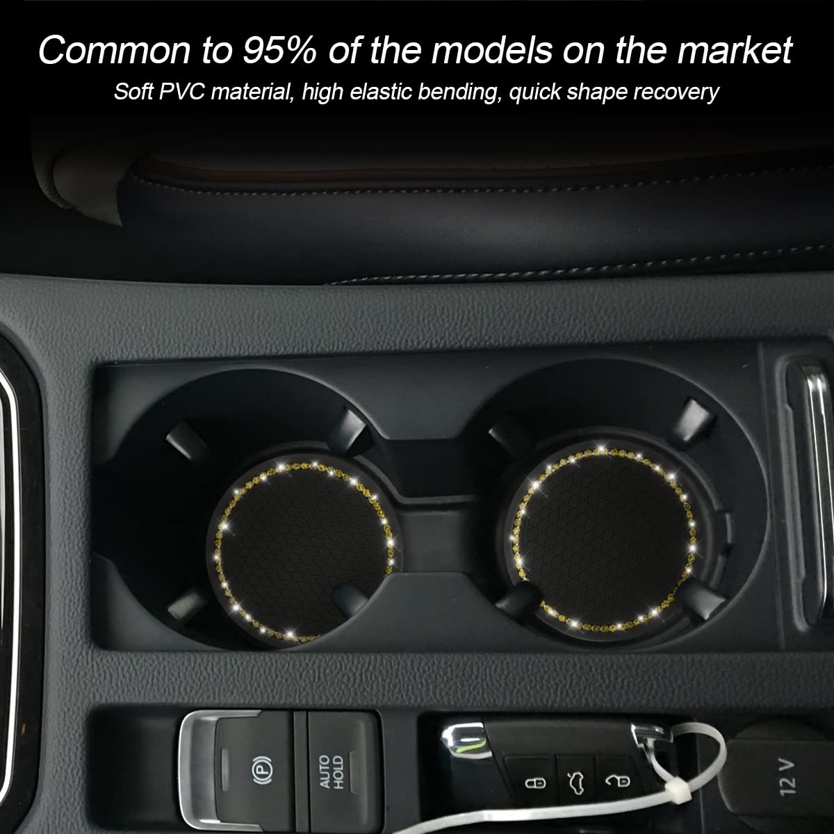 2 Pack Car Bling Cup Holder Coaster, 2.75 Inch Crystal Rhinestone Car Cup Holder Insert Coaster,Universal For Cars, Vehicles, Suvs, Car Interior Accessories For Women And Men (Black/Yellow)