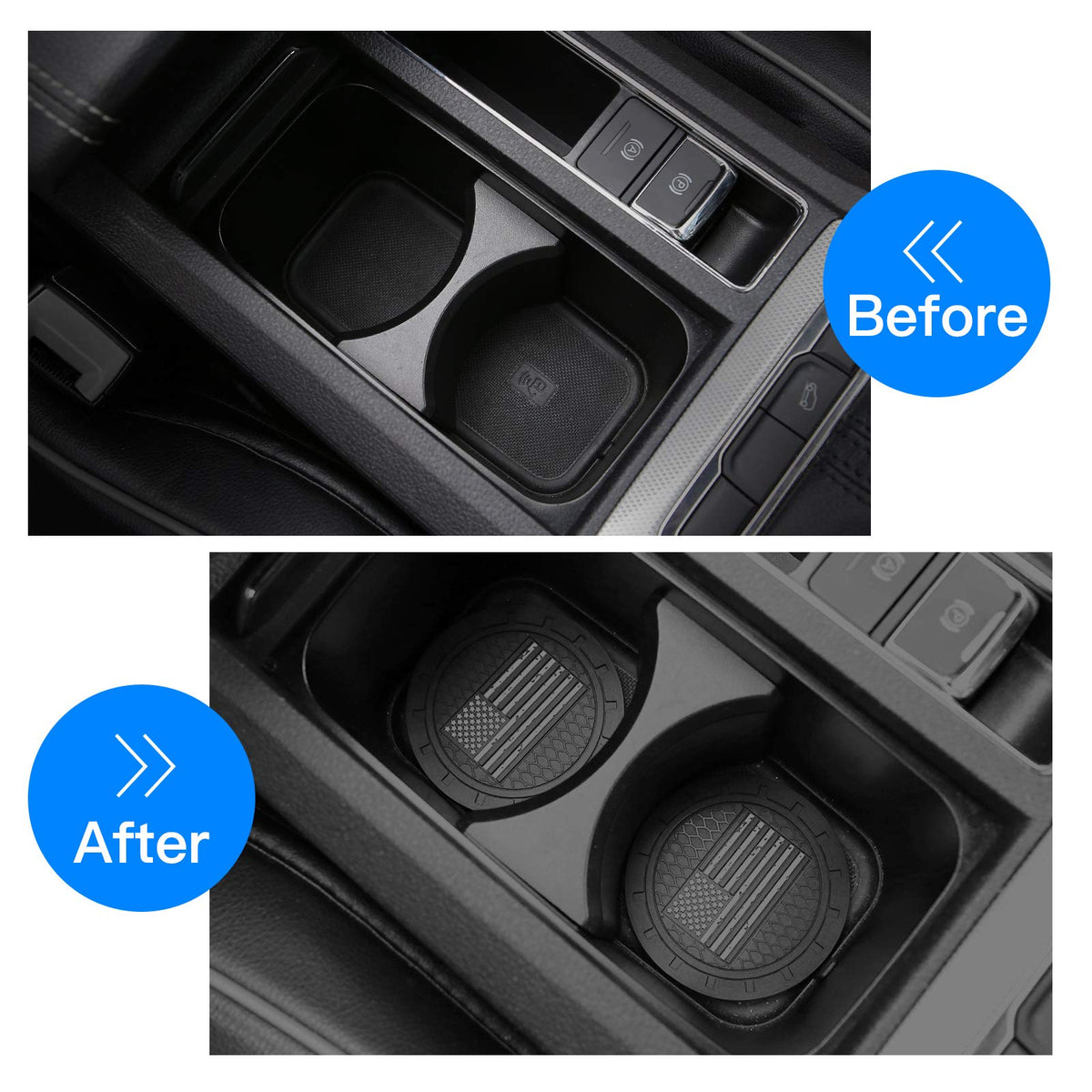 2 Pack Car Coasters, 2.75 Inch American Flag Soft Rubber Cup Holder Pad Set Round Auto Cup Holder Insert Drink Coaster Car Inter