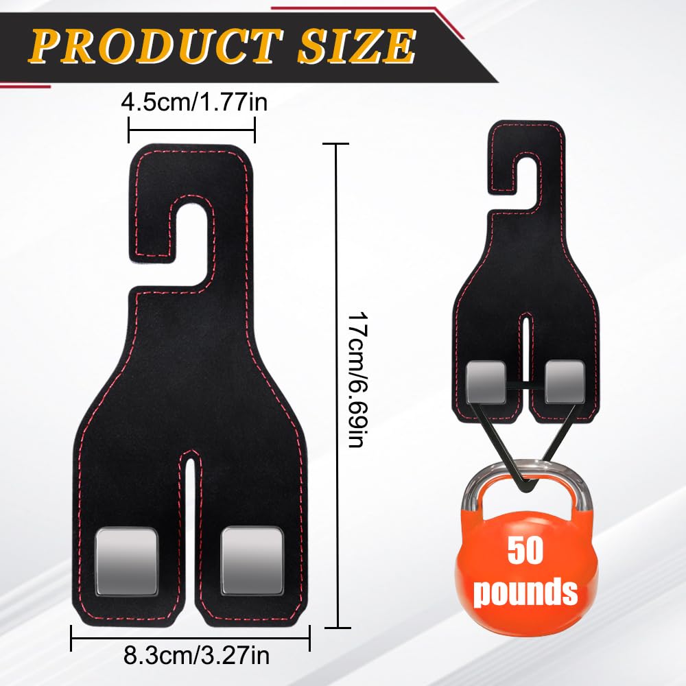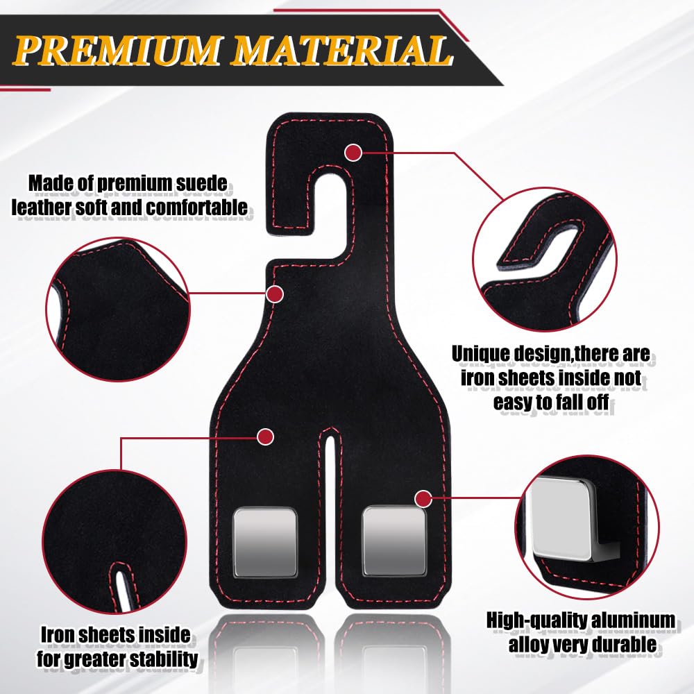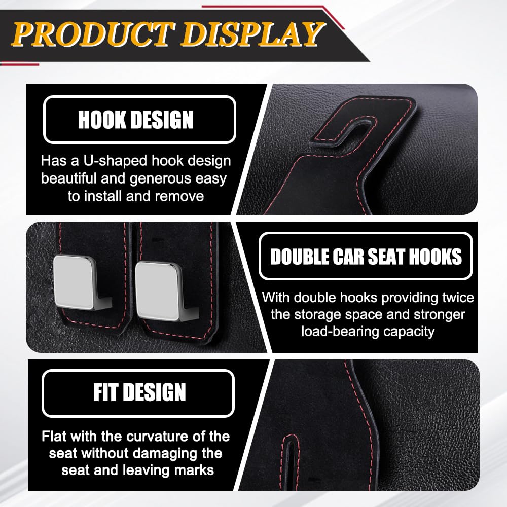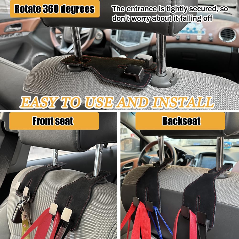 2 Pack Car Hooks for Headrest & Seat Back Storage Hook - Premium Leather Car Hangers with Double Holder, Sturdy Difficult to Fal
