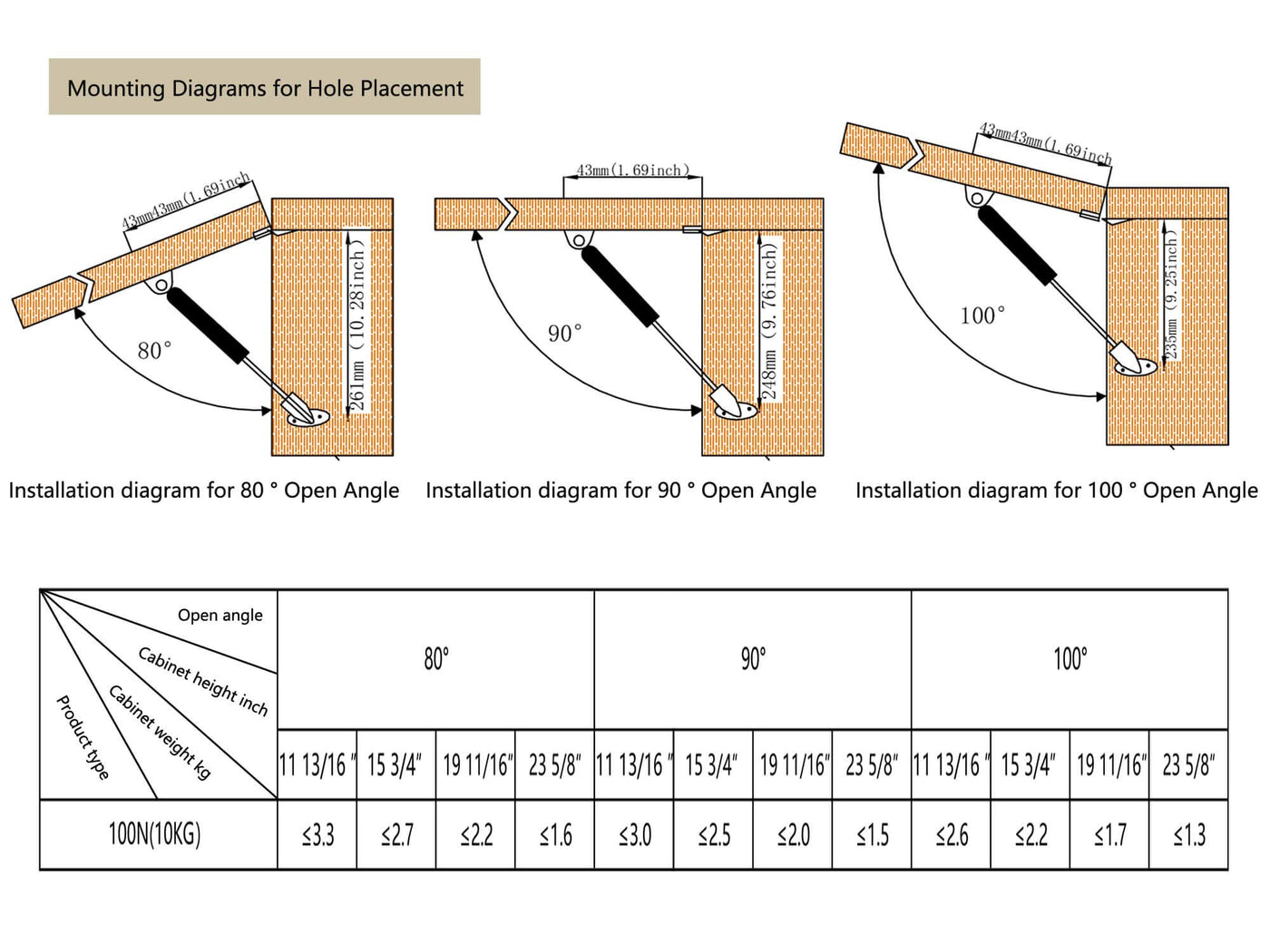 Q: Are the gas springs suitable for soft open and soft close applications?A: These gas springs are designed for stable support and gentle lid opening. They are ideal for keeping lids open up to 100 degrees but are not intended for soft close functionality.