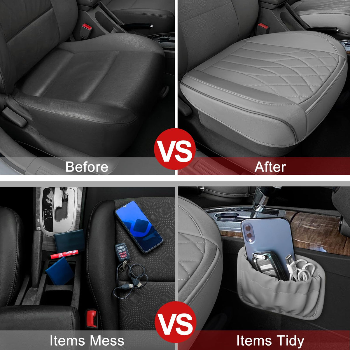 Beitk 2 Pack Leather Front Car Seat Cover Bottom Car Seat, Universal Anti-Slip Driver Car Seat Protectors With Storage Pocket, Waterproof Bottom Auto Seat Cushion Pad Mat For Most Vehicles(Grey)
