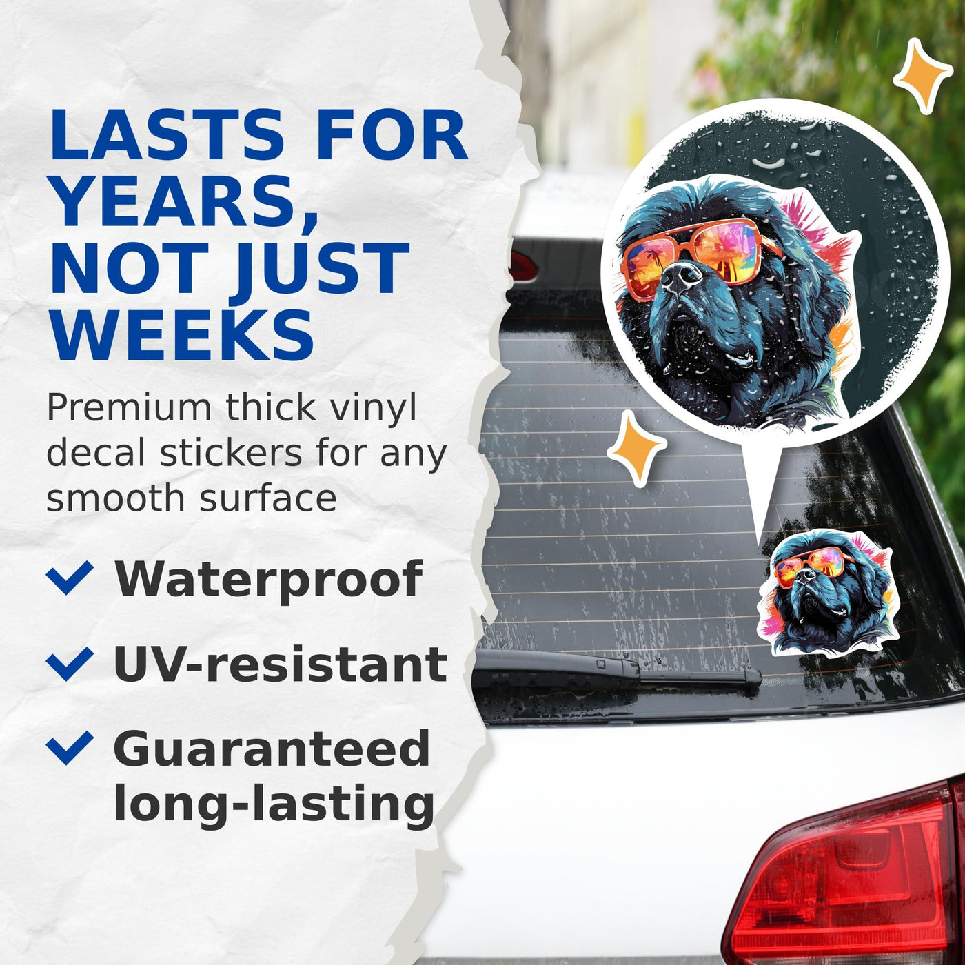(2 Pack) Newfoundland Dog Stickers - Newfoundland with Sunglasses - Choose FromOver 100 Dog Breeds - 5 Inches On Longest Side -