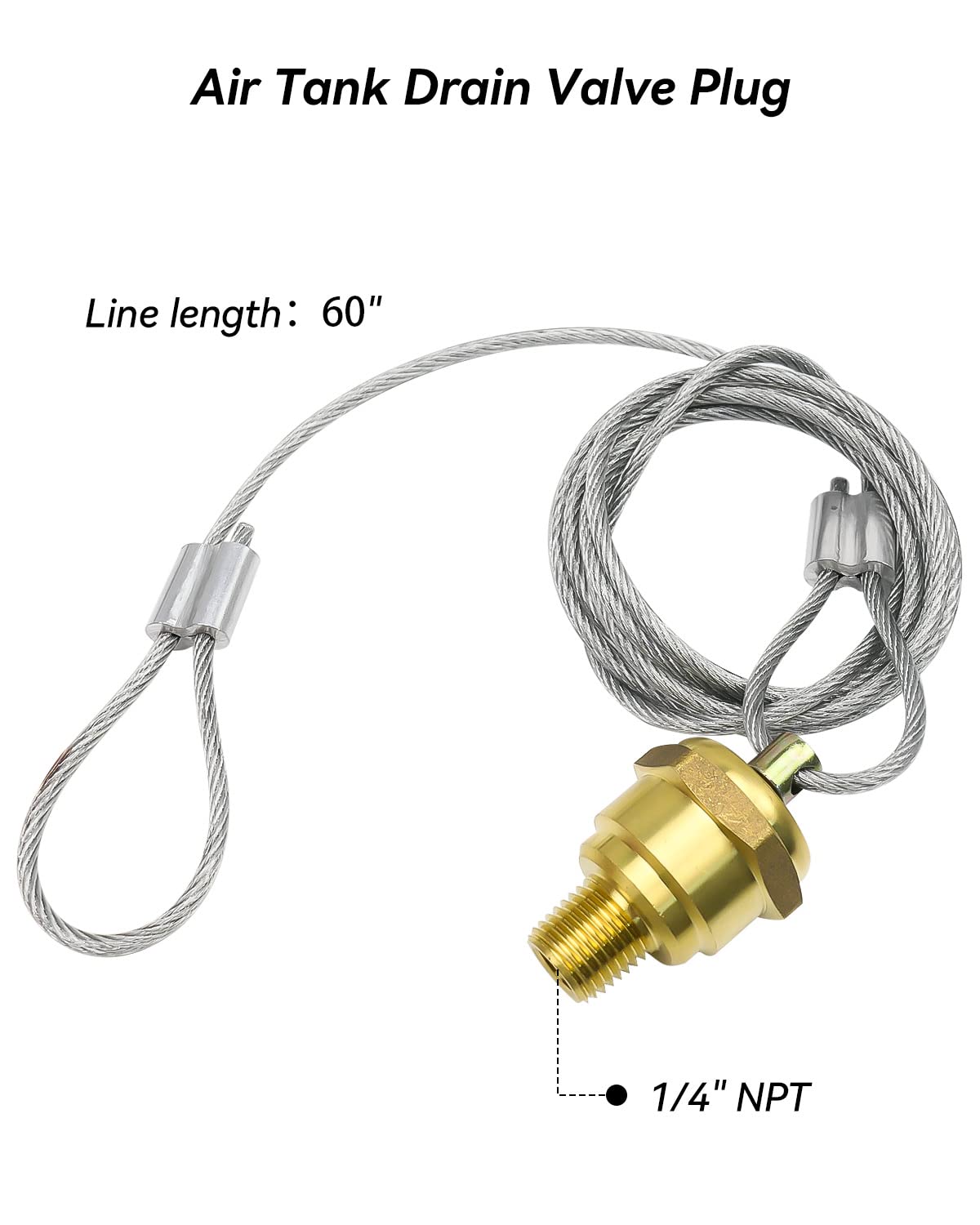 2 Pack Of Npt Air Tank Drain Valve With 60'' Cable, Air Brake Reservoir Drain Valve Air Compressor Drain Valve For Semi Truc