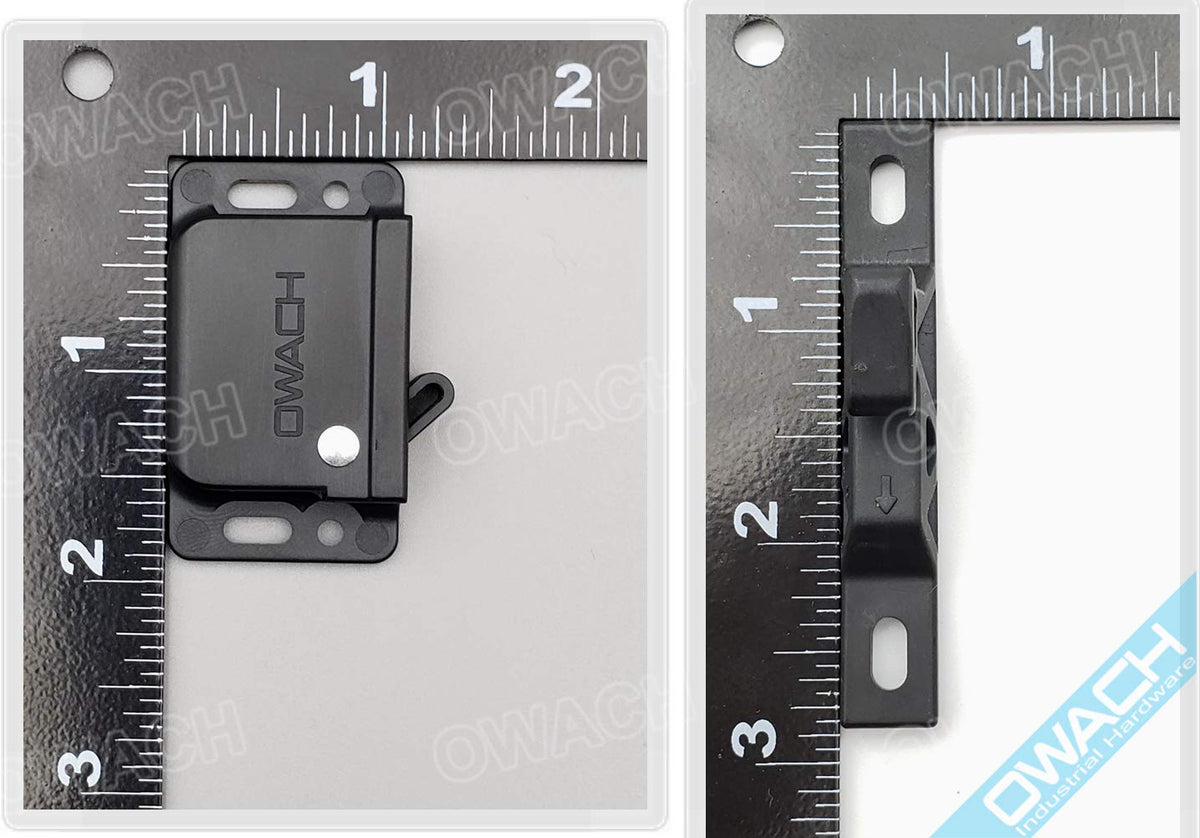 OWACH CL-308 Grabber Catch, Push to Close Latch Hold Cabinet Door Closed with 10 lbs of Pull Force Environmental-friendly material, meet RoHS Compliant Material: PC/ABS and Glass-filled Nylon Grabber catch side mount concealed push-to-close latches. Get an extra degree of closure force on doors, with this compact latch's internal spring-loaded pawl that provides over-center latching. The built-in pull-up provides tension to help prevent looseness or rattle of the door against the frame. Latching function is accomplished in a relatively low-profile mechanism, just 0.54-inches thick. Over-center action actually pulls door tighter to latch, releasing it when you pull to open door. Feature corrosion-resistant materials. Industry applications includes automotive, passenger vehicles, trucks, electronic enclosures, exhibits/signs, industrial enclosures, vending machines.