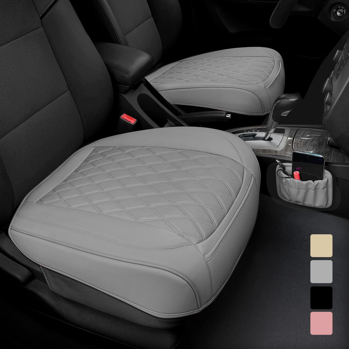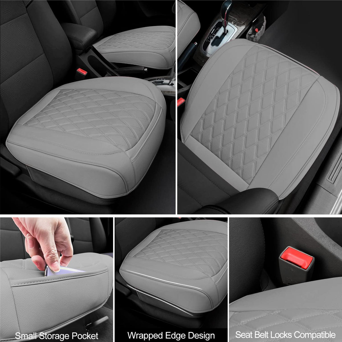 2 Pack PU Leather Front Car Seat Cover Bottom Car Seat, Anti-Slip and Full Wrap Driver Car Seat Protectors with Storage Pocket, Luxury Waterproof Bottom Auto Seat Cushion Pad Mat for Most Vehicles(Grey)