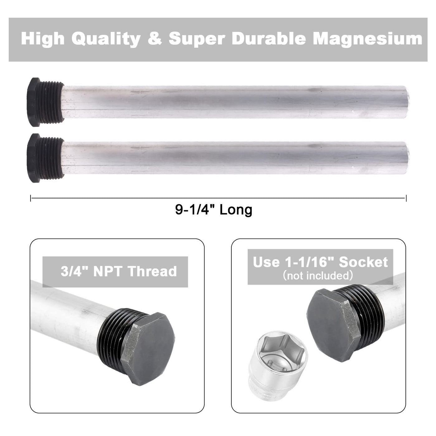2 Pack Rv Water Heater Anode Rod - 9.25 L X 3/4 Npt, Replacement Part For Suburban Water Heater 232767