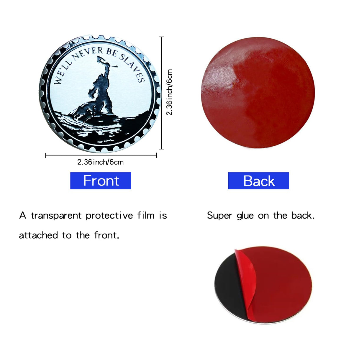 Q: What are the dimensions of the 2 PCS Car Emblem?A: The car decal measures approximately 6 x 6 cm, which is about 2.36 x 2.36 inches, making it a perfect size for various automotive applications.