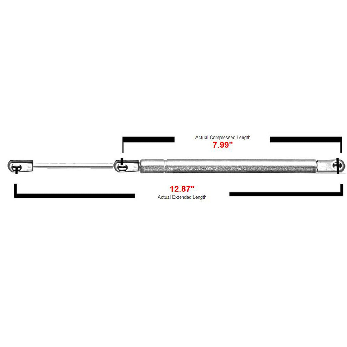 Q: What is the extended length of the lift supports?A: The extended length is twelve point eight seven inches. This measurement indicates how far the supports extend when fully opened.