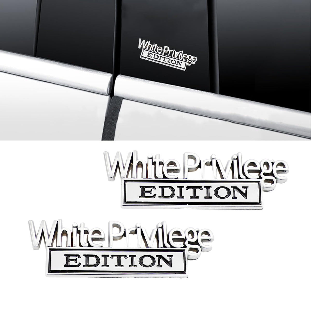 2 Pcs White Priviledge Edition Emblem Car Side Rear Front Hood Trunk Door Fender Bumper Metal Badge 3D Decal Sticker Fit For F15
