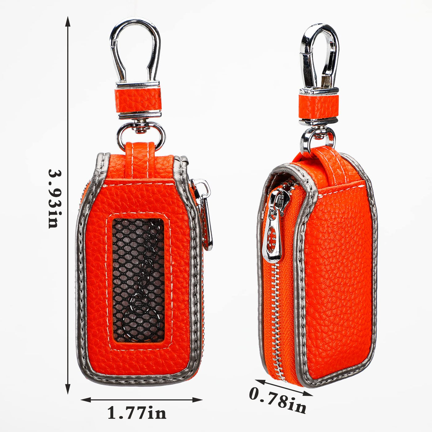 2 Pieces Leather Car Key Chain Case Holder Car Key Case Key Fob Protector Car Key Fob Cover Case (Orange)