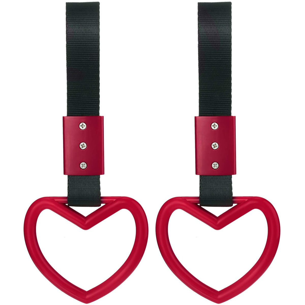 2 Pieces Rings Heart Shaped Car Handle Straps Drift Charm Rear Bumper Warning Decor Subway Bus Broken Handle for Car Interior(Re
