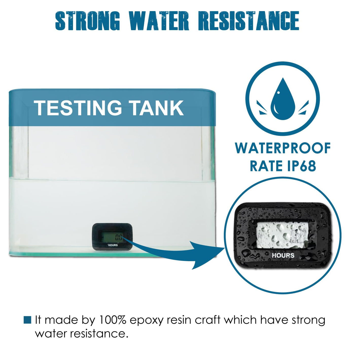 Runleader RL-HM057AD-H Digital Hour Reminder Gauge,Maintenance Reminder, Volt. DC 5V to 60V,Easy to install,Snap-in design and fits standard panel cut-out ,Waterproof design IP68. Product Features:1 Product Features: 1 Hour Meter Features---- Help to track how many hours are the equipment working,with Maintenance reminder. ? Display shows total run time of engine and remains visible. ? Total Hours reading displays from 0 to 999,99H, 0.1/1 hour accuracy. ? TOT hours are non-resettable. ? Maintenance reminder for change oil, range from 0 to 50H. 2 Applications:? This hour meter suitable for Outdoor Power Equipment,Generator,Agriculture,Construction Machinery,Vehicles,Boats etc.such as:Lawn Mower Garden Tractor Riding mower Leaf Blower Pressure washer chainsaw Snowblower Brush Mower Line Trimmer string trimmer Pressure Washer Portable inverter generator Motorcycle Dirtbike ATV UTV Scooter Paramotor Harley dual-sport bike Golf cart Outboard Jetski Pontoon boat Mercury Raceboat Hovercraft etc.3 Product Specification ? Product:RL-HM057AD-H(2 pieces combination pack)? LCD Screen size 12.5mm 24.5mm? Panel Cutout Size:Approx 37.5 24.5mm(1.5 1 Inch)? Product size:46x31x36.7cm? Weight:32g? Waterproof rate: IP68? Product accessories:spring sheaths,insert sheaths,user manual. ? CE RoHS certification? External power connection are devided positive and negative pole.