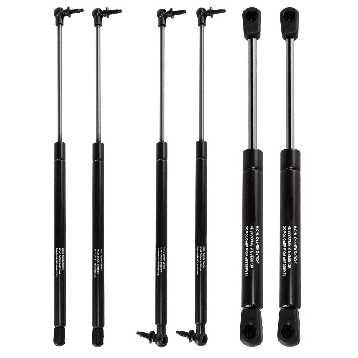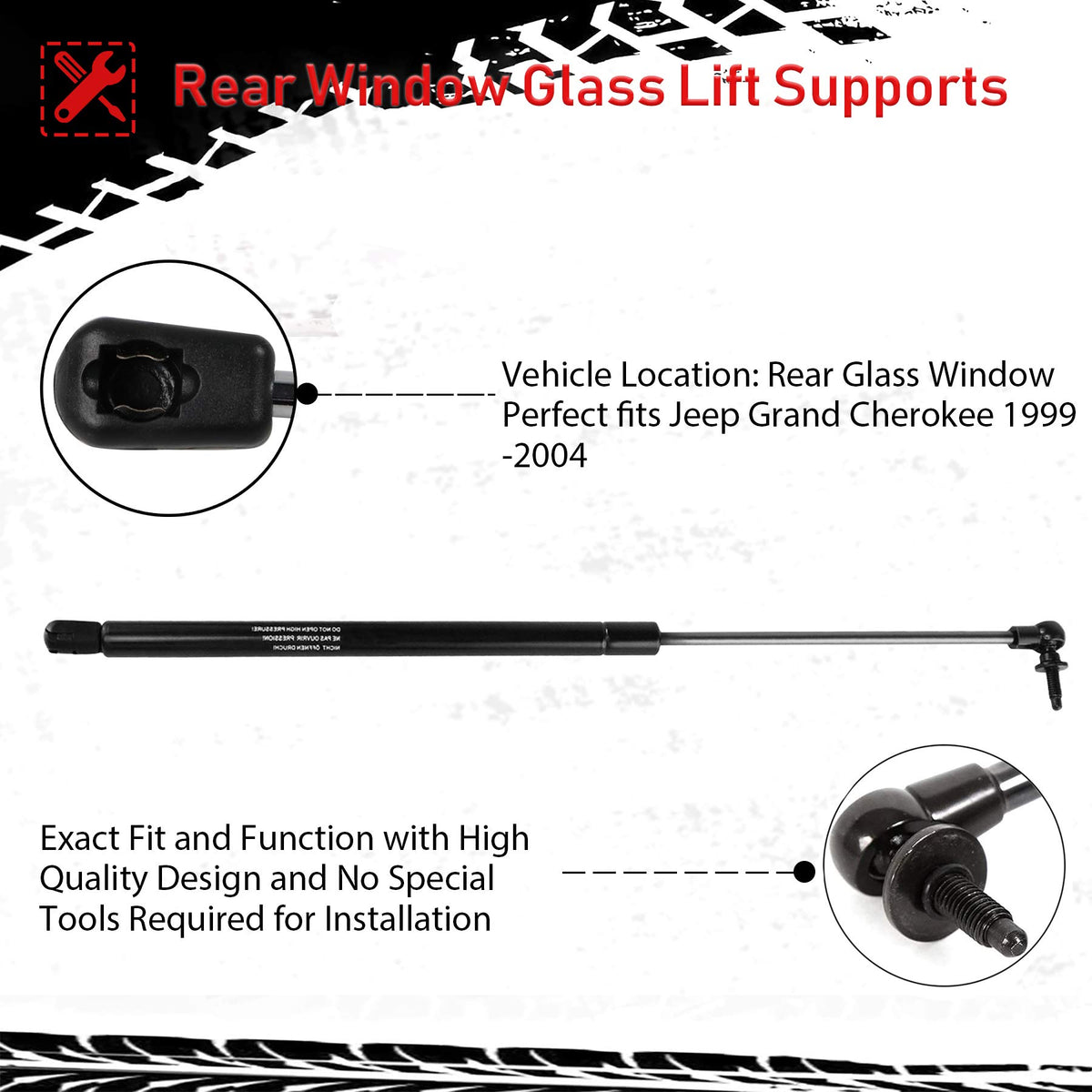 Fit For: 1999-2004 for Jeep Grand Cherokee Base Sport Utility 4-Door 1999-2004 for Jeep Grand Cherokee Laredo Sport Utility 4-Door 1999-2004 for Jeep Grand Cherokee Limited Sport Utility 4-Door 2002-2004 for Jeep Grand Cherokee Overland Sport Utility 4-Door 2004 for Jeep Grand Cherokee Special Edition Sport Utility 4-Door 2002 for Jeep Grand Cherokee Sport Sport Utility 4-Door 2002 for Jeep Grand Cherokee TSi Sport Utility 4-Door Interior Technology: -Highest corrosion resistance achieved through powder-coated cylinders and specially treated piston rod surfaces. -Minimal friction for the production of lowest extension forces. -Great life cycles. -Protection against vibration and light side forces. -Integrated grease chamber. -Low breakaway forces. -Installation and storage in any position. -Use compressed gas, contained in a cylinder and compressed by a piston, to exert a force to support the weight of front hood or rear liftgate tailgate hatchback doors while they are open, no need to hold the door up with your head Note: Location: Hood: Front Left and Right. Tailgate: Rear Left and Right. Rear Window: Rear Left and Right. Package includes: -2Pcs Front Hood Lift Supports Struts Props -2Pcs Rear Tailgate Lift Supports Struts Props -2Pcs Rear Window Lift Supports Struts Props