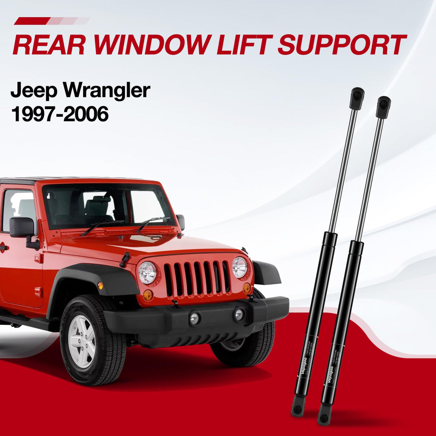 Q: What is the force rating of these lift supports?A: Each shock has a force rating of 147N, providing strong and reliable support for your Jeep Wrangler's rear window.
