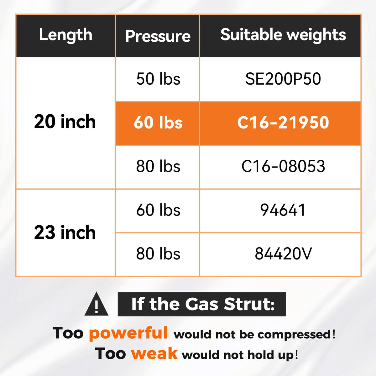 20 Inch 60 Lbs Strut C16-21950 Gas Shock C1621950 20'' /267N Spring For Camper Shell Tanning Bed Storage Rv Door Truck Bed Cover