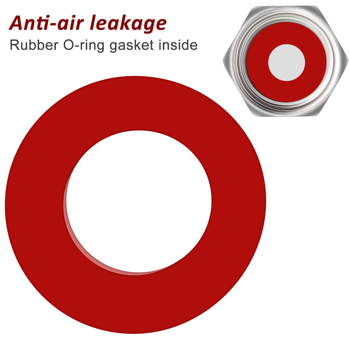 Q: What benefits do the rubber O-ring seals provide?A: The rubber O-ring seals enhance the anti-leak design of the caps, providing a tight seal that keeps out dust, dirt, grime, and road debris, thereby protecting the valves effectively.