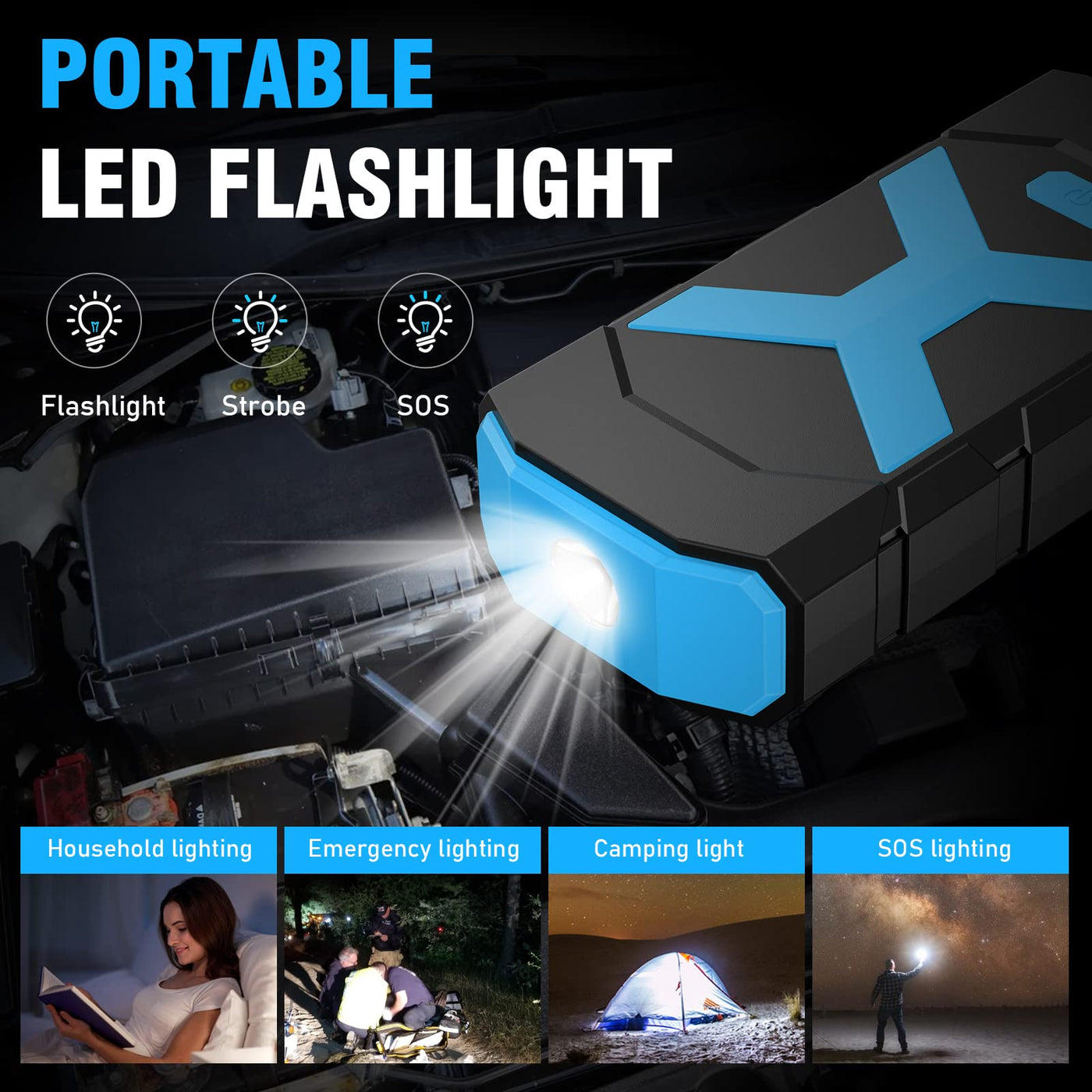 Q: What is the significance of the waterproof design in this jump starter?A: The waterproof design, rated IP66, ensures that the jump starter remains functional in harsh weather conditions, including rain and snow. This durability makes it a reliable choice for outdoor adventures and emergencies.