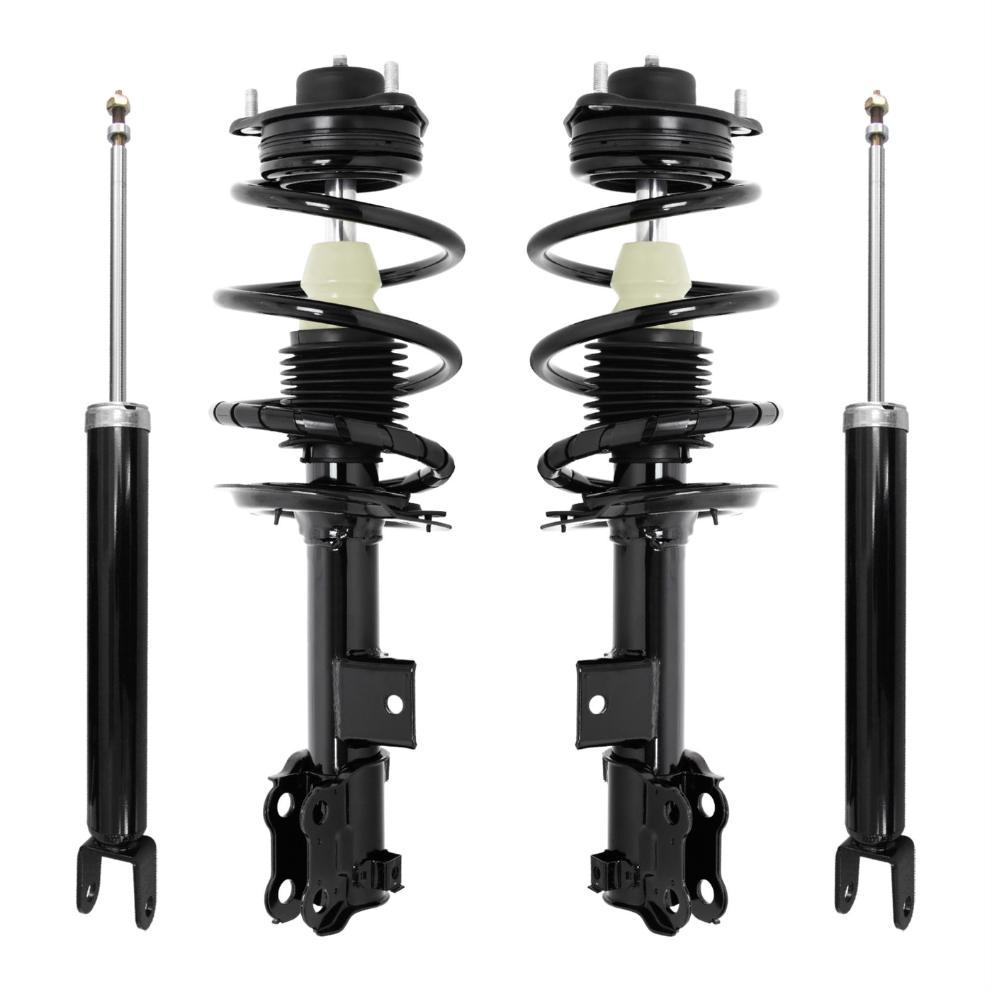 Q: What is included in the Unity Automotive Complete Strut Assembly Shock Kit?A: The Unity Automotive Complete Strut Assembly Shock Kit includes (2) Front Complete Strut Assemblies and (2) Rear Nitrogen Gas Charged Shock Absorbers, all fully assembled and ready for installation.