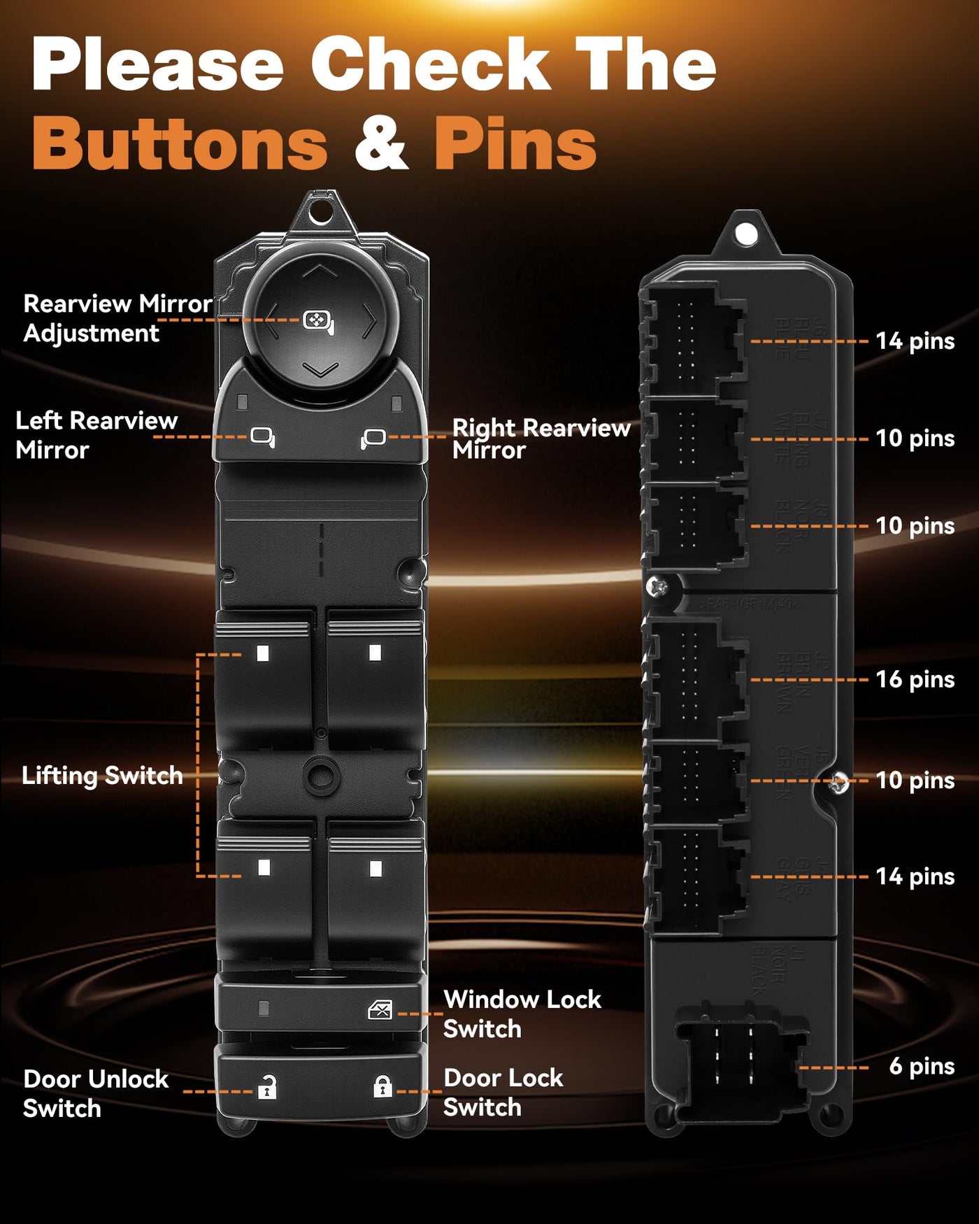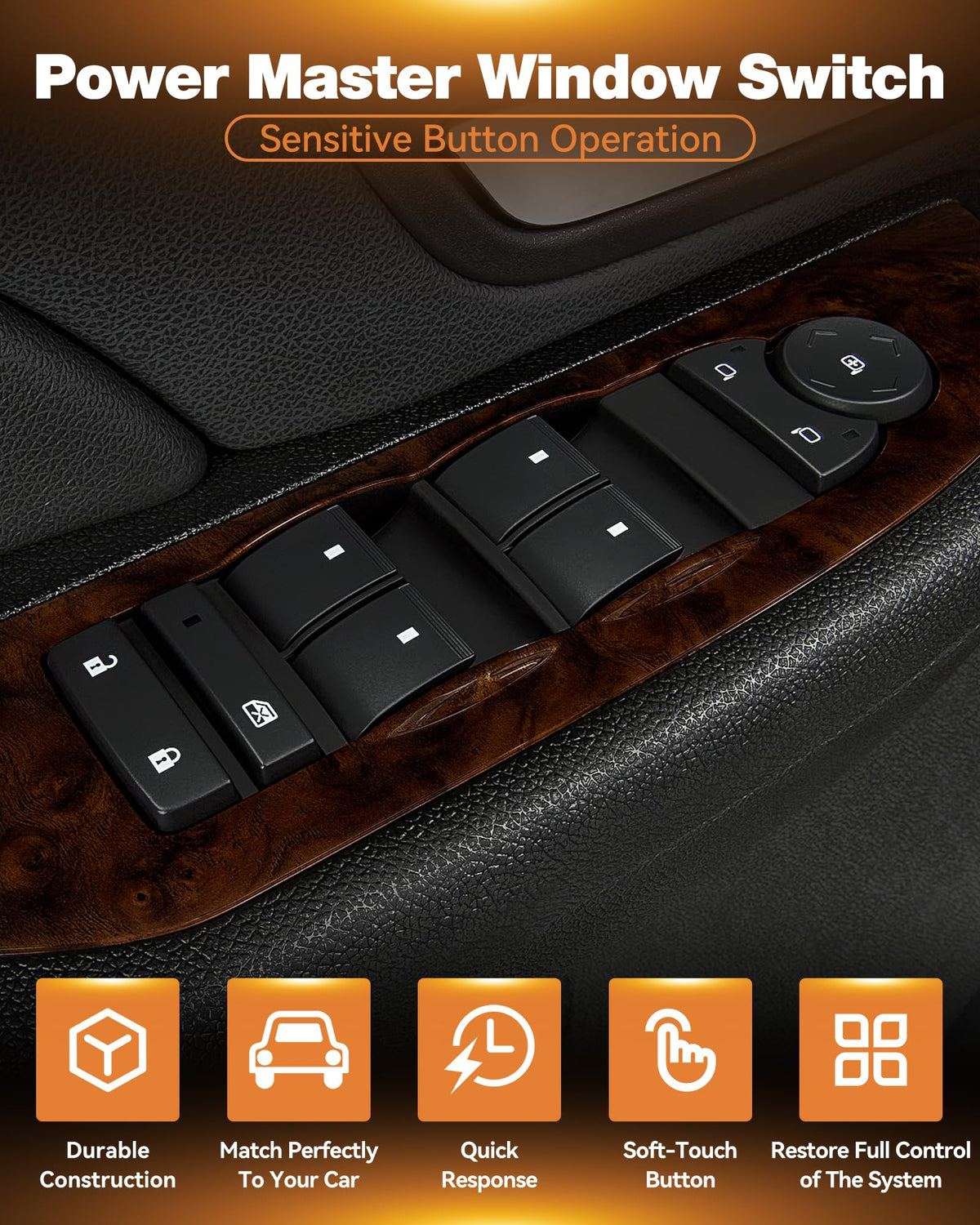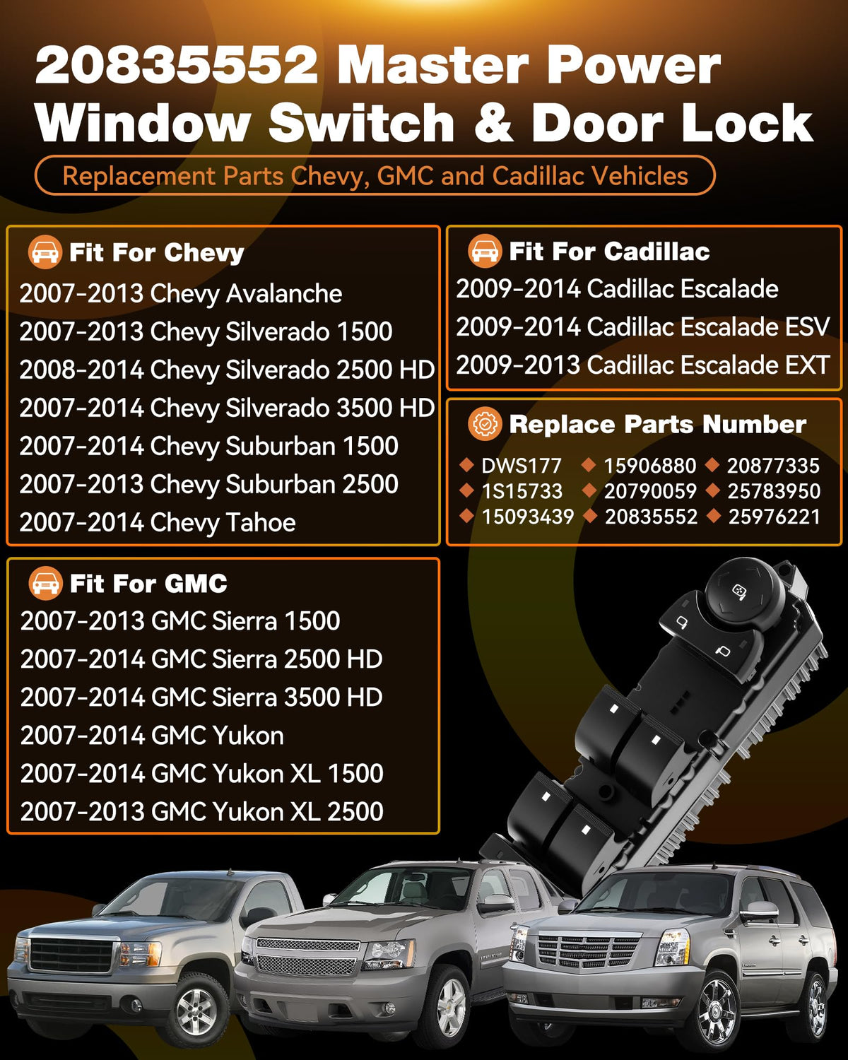20835552 Driver Side Master Power Window Switch Fit for Chevrolet Silverado 1500, Silverado 2500 HD, Tahoe, Suburban 2500, Avala