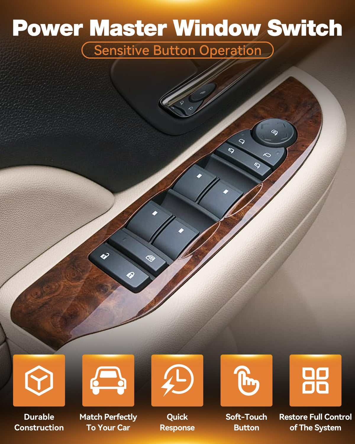 20835553 Driver Side Power Master Control Door Lock and Window Power Switch Fit for 2007-2013 Chevy Silverado Avalanche, 2007-20