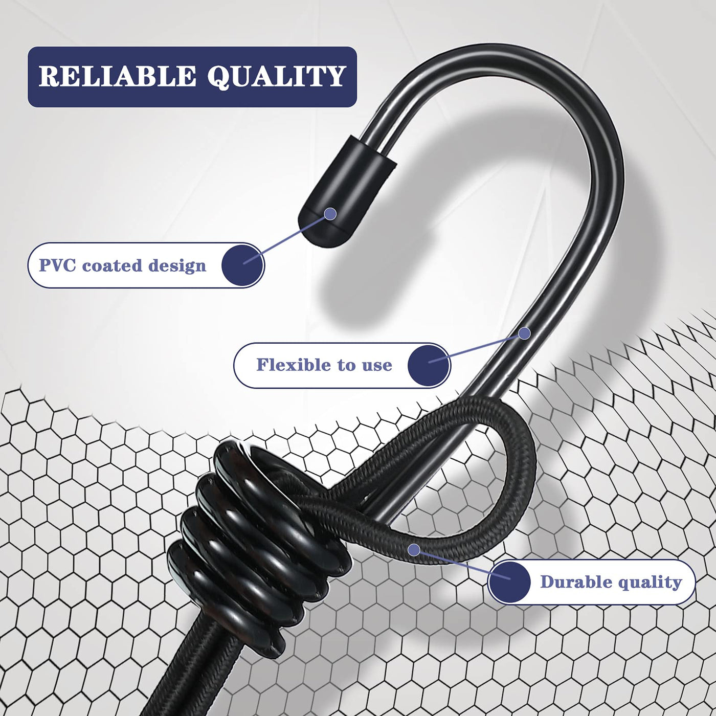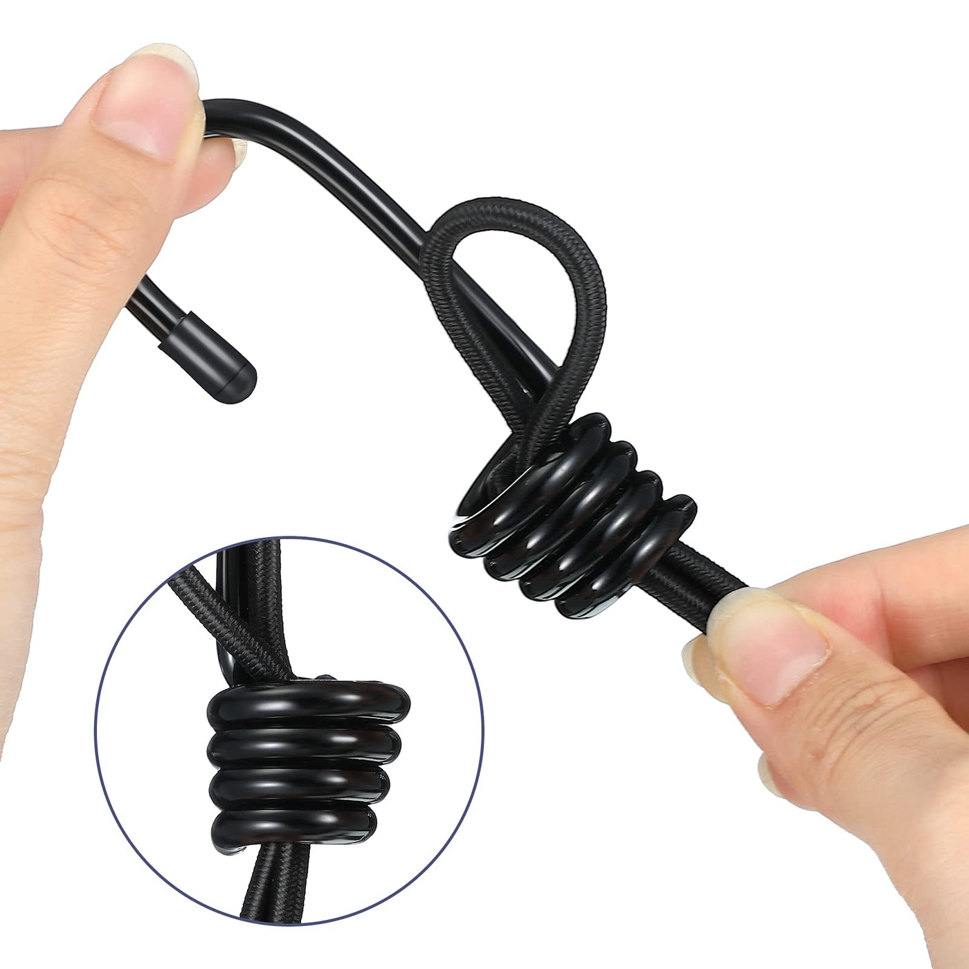 Q: Can these bungee hooks be used for securing cargo on vehicles?A: Yes, the coated black bungee hooks are ideal for securing cargo on various vehicles including cars, trucks, motorcycles, bikes, and trailers.