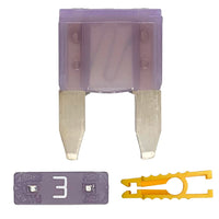 Q: What is the amperage rating of these mini blade fuses?A: These mini blade fuses have an amperage rating of 7.5A, making them suitable for applications that require a fast blow fuse to protect electrical circuits from overloads.
