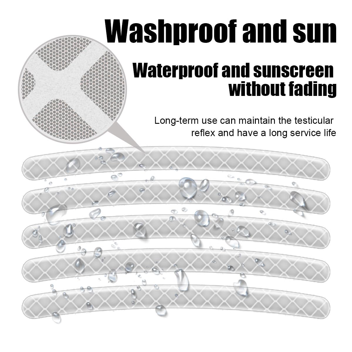 Q: Are these stickers waterproof and suitable for all weather conditions?A: Yes, the 20PCS Car Wheel Stripe Reflective Stickers are made from high-quality PVC material and feature a newly upgraded honeycomb mesh adhesive that is waterproof, sunproof, and scratch-resistant, making them suitable for various weather conditions.
