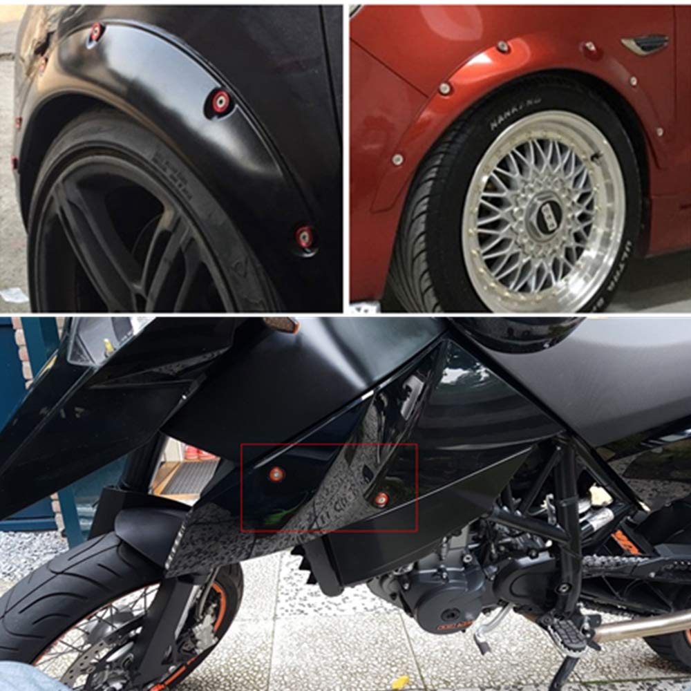 Q: Do these fender washers come in different colors?A: Yes, they are available in multiple colors including red, black, blue, silver, and purple. This allows for customization based on your vehicle's aesthetic.