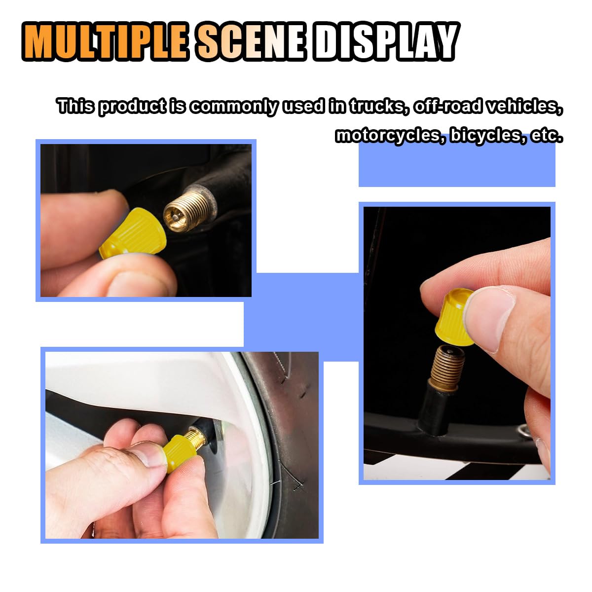 The tire valve cover is made of high-quality plastic, which effectively prevents dust and sand from the tires, and it is easy to install, corrosion-resistant, and waterproof, which extends the life of the tires.Specification:Brand: KITUREKName: Tire Valve Stem CapsColor: Black/Green/Yellow/Blue/WhiteMaterial: PlasticSize: 0.52 0.36 inchApplicable: Most vehiclesFeatures:-The tire valve caps with O-Ring rubber seal are fit for most tire sizes and can keep tires inflated at the proper level.-Its plastic design will not be easy to rust and corrode even if being used for a long time, which can protect your valves from dirt and dust, heavy-duty and weather-resistant to extend the service life of the tire.-The tire stem valve caps with ergonomic grip design are easy to grab without slipping for hard finding.