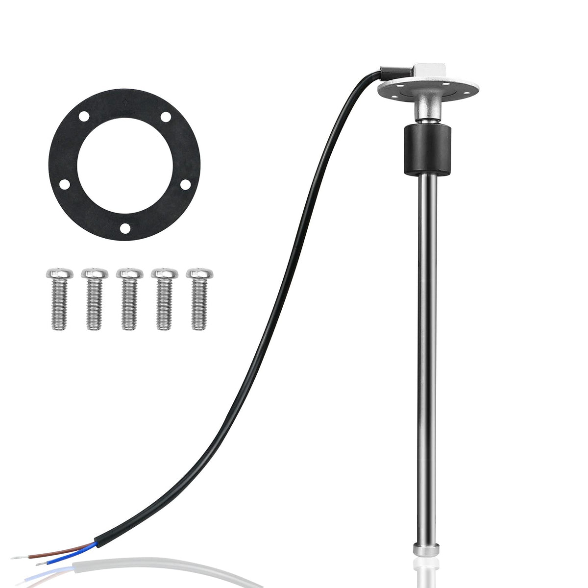 Q: What materials are used in the construction of this fuel level sensor?A: The fuel level sending unit is made of heavy-duty SUS316 stainless steel, along with PVC and an NBR float, ensuring durability and resistance to various environmental conditions.
