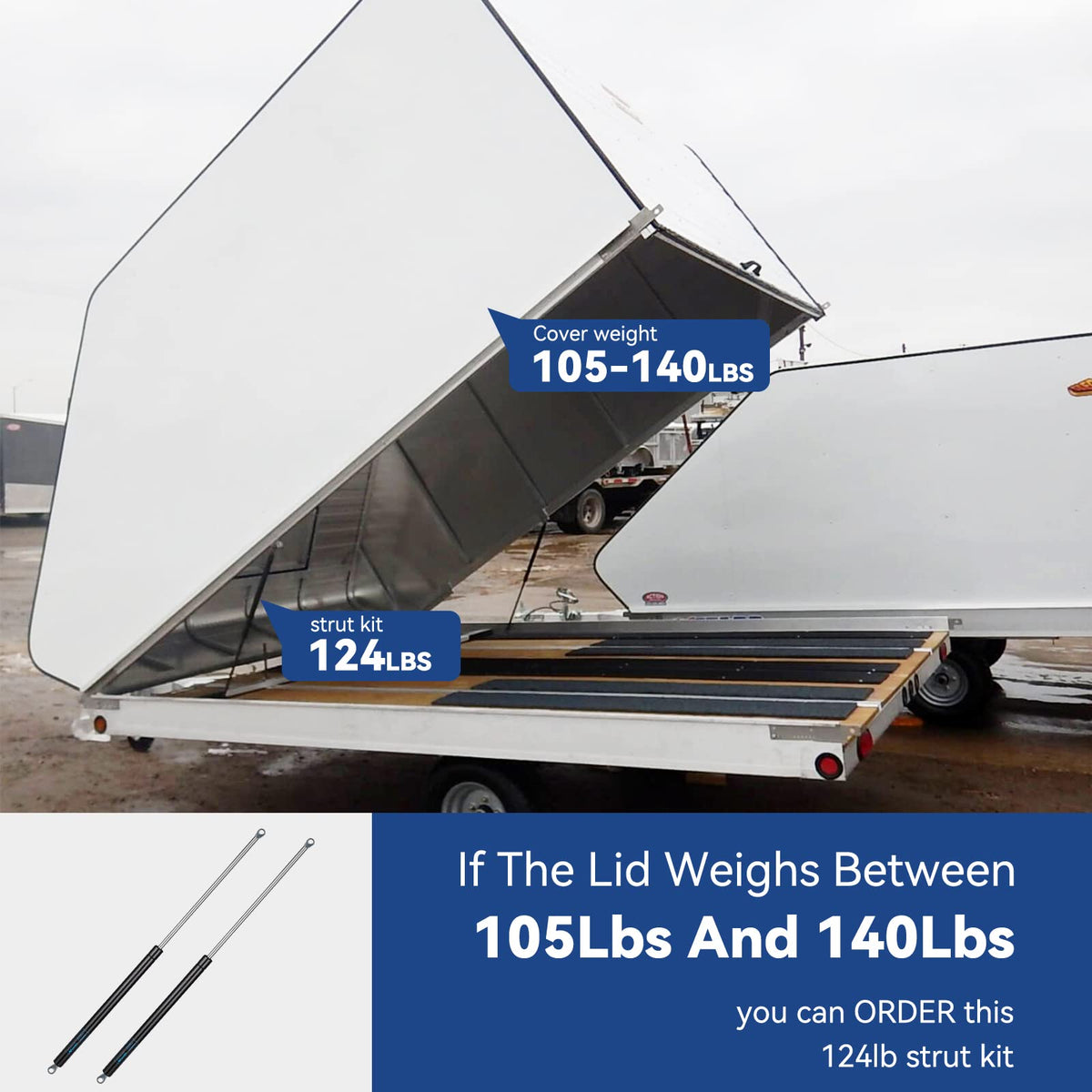 Please weigh the lid at 20%~30% from the hinge of the door, if it reads about 105-140pounds, you could select the ARANA Solera 280343 26 124lb struts;