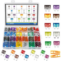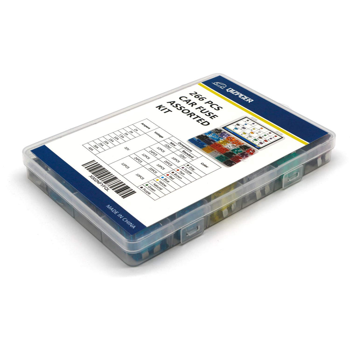 Qizpcer 266pcs ATO & ATM Style Blade Fuse Kit Includes Standard Fuses and Mini Fuses Specifications: Model: Standard Fuse and Mini Fuse Interrupting Rating: 1000A @ 32 VDC Material: Zinc Alloy Housing Materials: PC Fuse Size: 19L 5W 18H mm Quantity: 266 Pieces assortment car fuse Package includes:(ATO/ATC/ATS/APR Fuse) Standard 10 Pieces x 2 A Standard 10 Pieces x 3 A Standard 20 Pieces x 5 A Standard 10 Pieces x 7.5 A Standard 10 Pieces x 10 A Standard 20 Pieces x 15 A Standard 10 Pieces x 20 A Standard 10 Pieces x 25 A Standard 10 Pieces x 30 A Standard 10 Pieces x 40 A Mini 12 Pieces x 2 A Mini 12 Pieces x 3 A Mini 24 Pieces x 5 A Mini 12 Pieces x 7.5 A Mini 12 Pieces x 10 A Mini 24 Pieces x 15 A Mini 12 Pieces x 20 A Mini 12 Pieces x 25 A Mini 12 Pieces x 30 A Mini 12 Pieces x 40 A Note: Please use the right amp fuse to protect the vehicle and electronic equipment from short-circuit/overload.