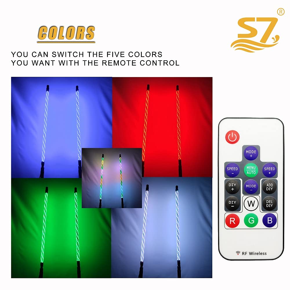 2Pcs 3Ft Led Whip Lights With Remote Control Spiral Rgb Chase Light Offroad 360°Spiraling Rising Dream Wrapped Dancing Whips For Utv,Atv,Off Road,Truck,Sand Buggy,Rzr,Can-Am,Boat (3Ft Whip Lights)