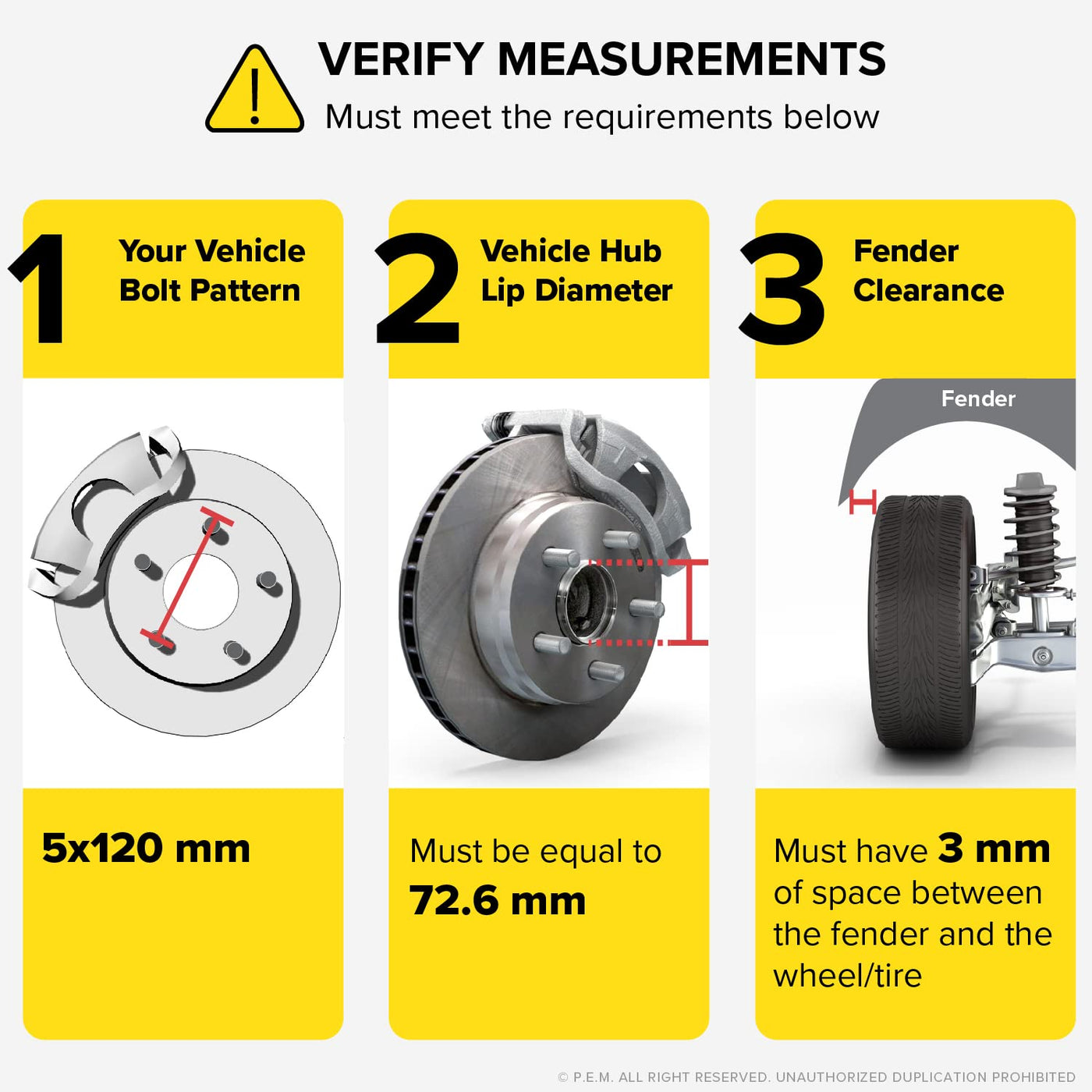 - Q: How do I install the 3mm Hubcentric Wheel Spacers? A: Installation requires standard tire repair tools, a torque wrench, and a lug socket. Ensure you have 3mm of clearance between your wheel and fender. If necessary, extended lug bolts or wheel studs may be needed (not included). We recommend professional installation, especially for first-time users.