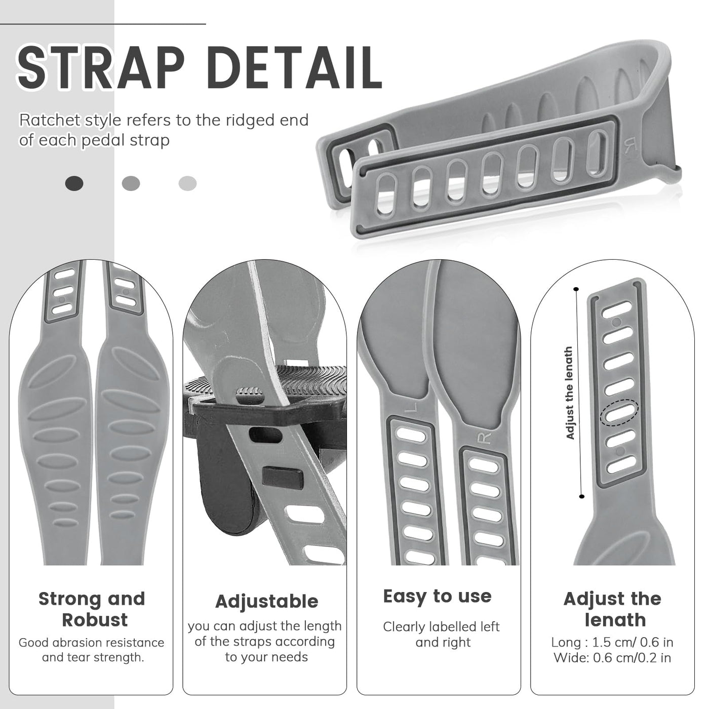 Adjustable: This gym items is equipped with different holes, you can freely adjust the tightness of this gym necessities according to your personal foot shape and comfort needs. Easy to Use: This replacement with R and L letters is convenient for you to clearly identify the direction of use and avoid wrong wearing. Therefore, you can enjoy a more convenient sports experience by choosing this gym gear. Fine Workmanship: This gym things has smooth lines and rounded edges without scratching. Such workmanship not only enhances the aesthetics of this product, but also ensures the security and comfort of the user when using. Design Appearance: This exercise stuff is a blend of fashion and practicality. Simple but not losing the style lines, with a high-class sense of gray, make this part more visually appealing. Multiple Scenario Adaptation: This fixie is fit for most of the stationary bike pedals. Whether it is a home fitness exercise bike or a professional gym exercise bike, this accessory can be adapted. Package Listing: 2 Strap Product Specifications: Materials: Plastic Materials, Fresh Materials Color: Grey Color Dark Grey Strap Size: 12.9 2.3 0.5in/32.7 5.8 1.3cm Note: 1.Manual Measurement, Please Allow Slight Errors on Size 2.The Color May Exist a Slight Difference Due to Different Screen Displays