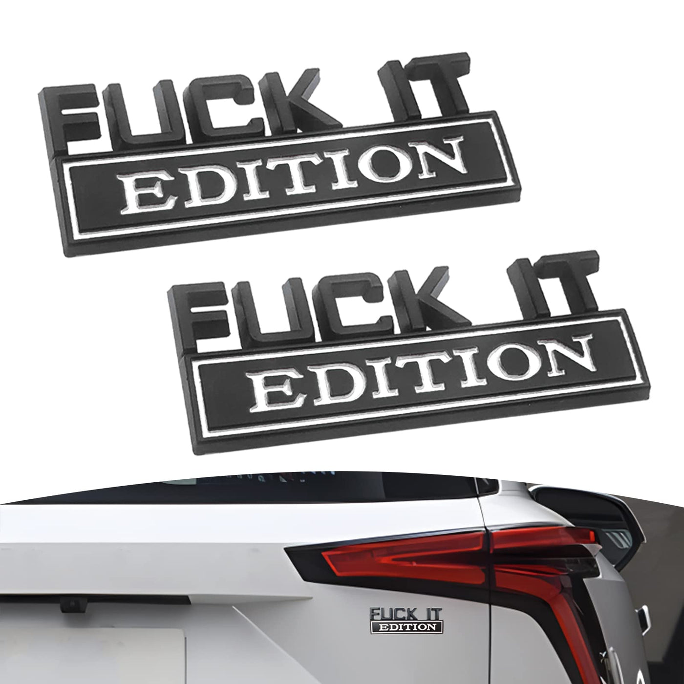 2Pcs Car Emblem Fuck-It Edition, 3D Letters Metal Material Car Decals, Trunk Emblem Decals Replacement, Side Fender Rear, Unversal Of All Car Models (Black-White)