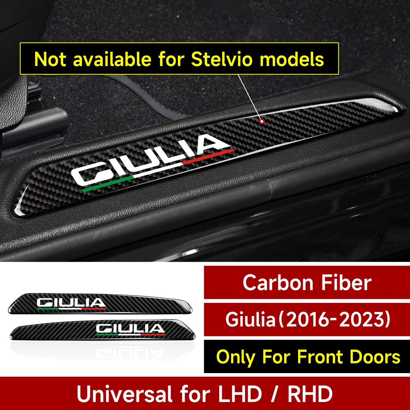 Q: Is the 2PCS Car Threshold Protection Sticker compatible with my Alfa Romeo Giulia?A: Yes, this product is specifically designed to fit Alfa Romeo Giulia models from 2017 to 2019. However, it is not compatible with the Stelvio model.