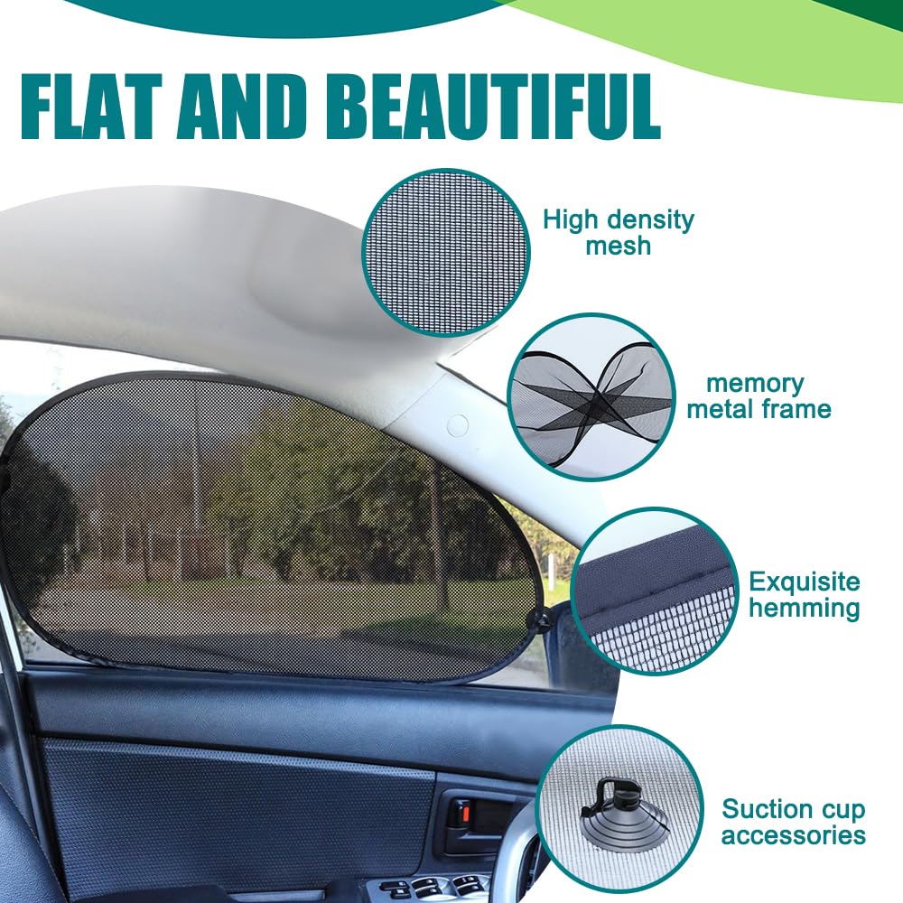 2PCS Car Window Shades, 25'' 15'' Side Window Sun Shade Blocker with Suction Cups, Universal Car Accessories Mesh Vehicle Windo