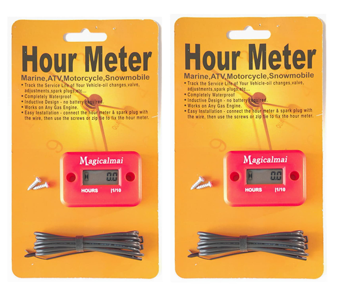 2Pcs Magicalmai Inductive Hour Meter For Gas Engine Lawn Mower Dirt Bike Motorcycle Motocross Snowmobile Karting Marine Atv Boat