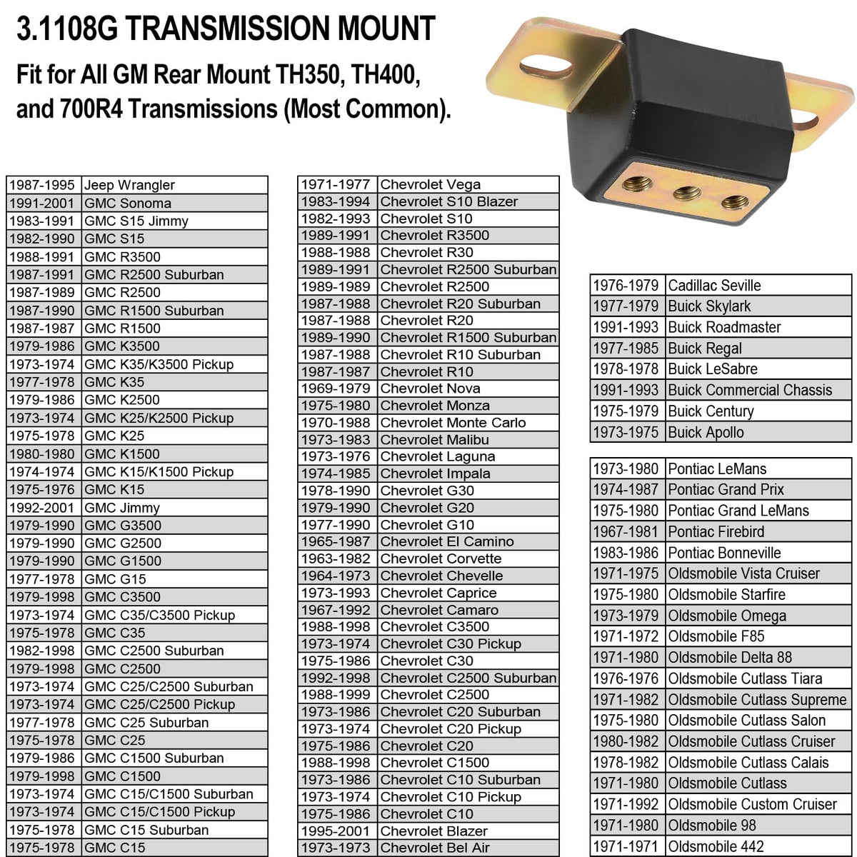 3.1108G General Transmission Mount Performance Polyurethane Mounts Bracket Set Fit For Gm Cars And Trucks Th350, Th400, 700R4, And For Chevy Turbo Most Transmissions