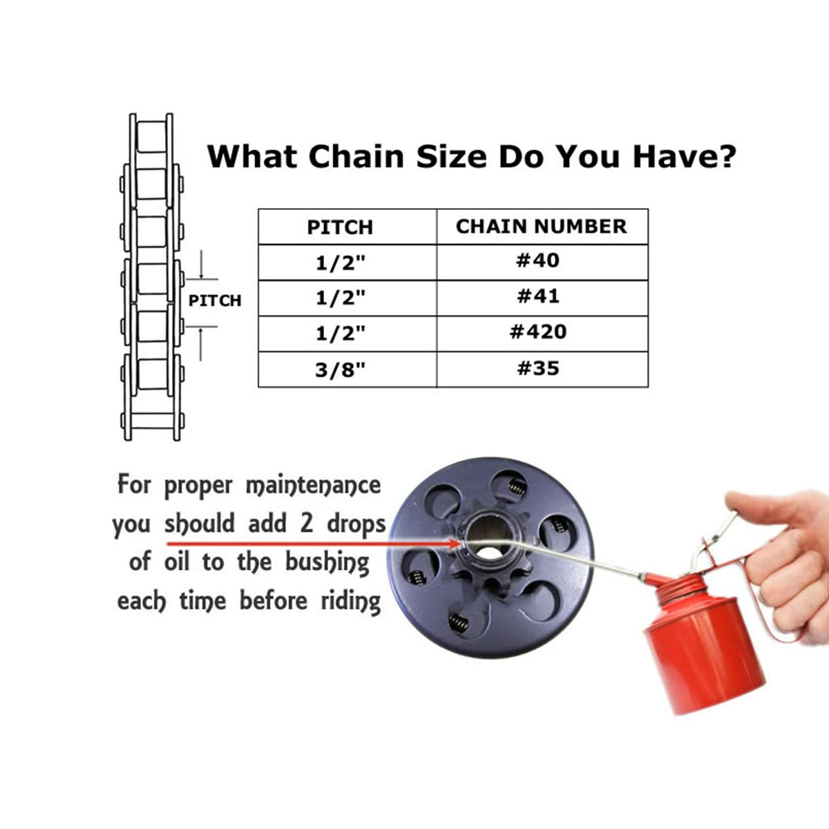 3/4'' Bore 10 Tooth Centrifugal Go Kart Engine Clutch With 5 Feet #40/41/420 Chain For 2-6.5Hp, Up To7Hp Small Engines, Honda Gc